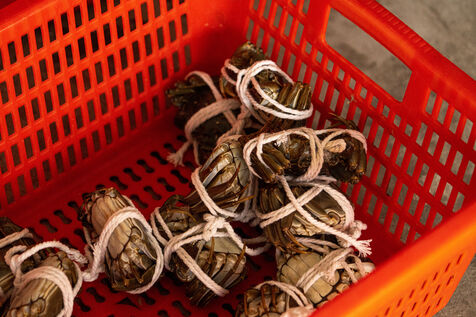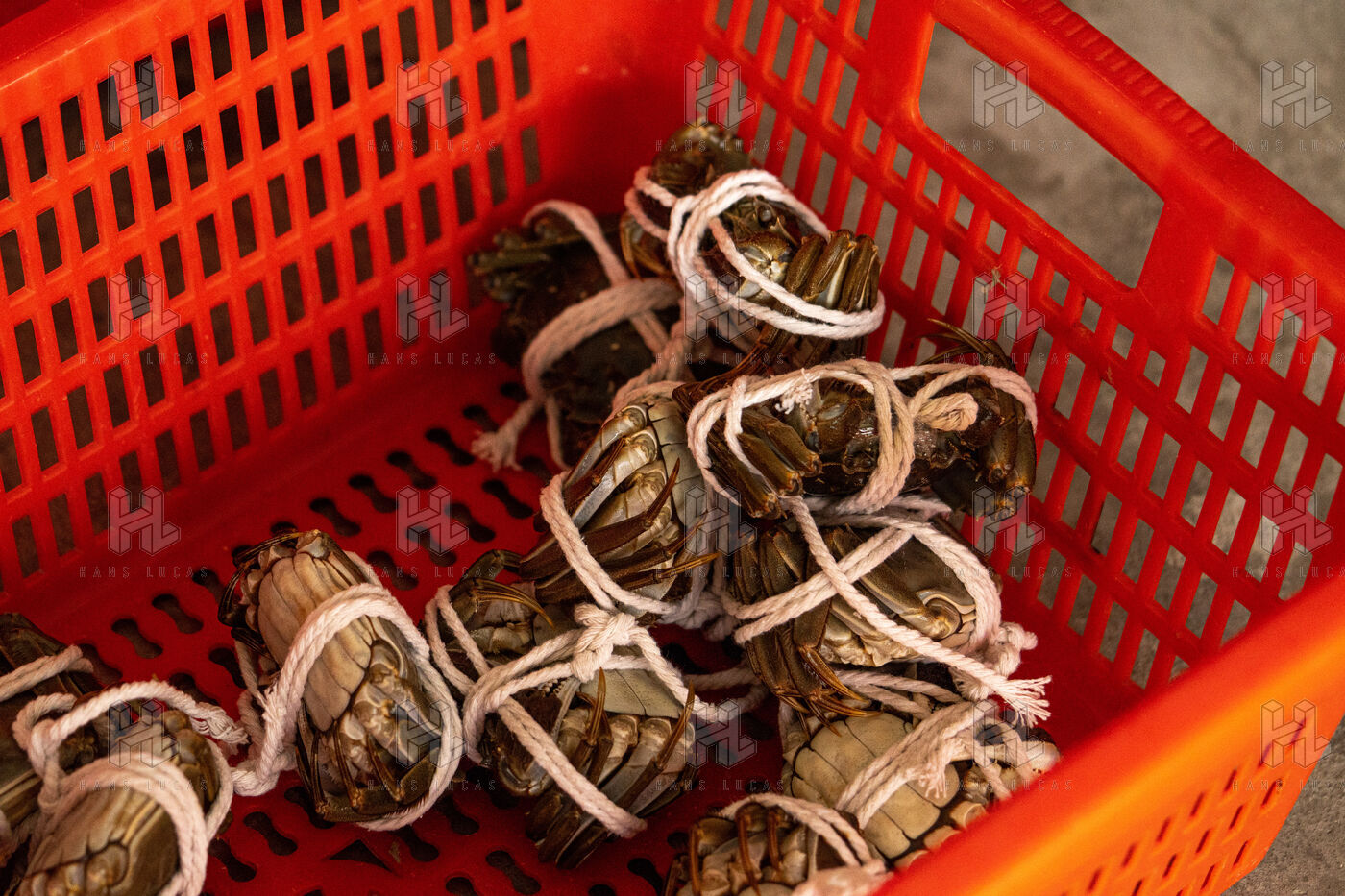 I walked through Bacheng's crab market, where vendors shouted prices and hands tied crabs with practiced precision. Restaurants lined the lakefront, their tanks filled with crabs ready for sale. The air smelled of freshwater and steam, mingling with the sounds of people moving, ropes being tied, and conversations in the busy market. Workers prepared the harvest carefully, ensuring the crabs were ready for delivery to customers and restaurants.