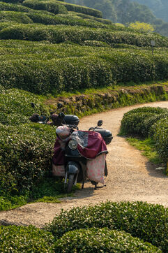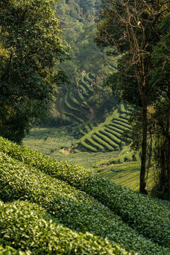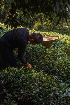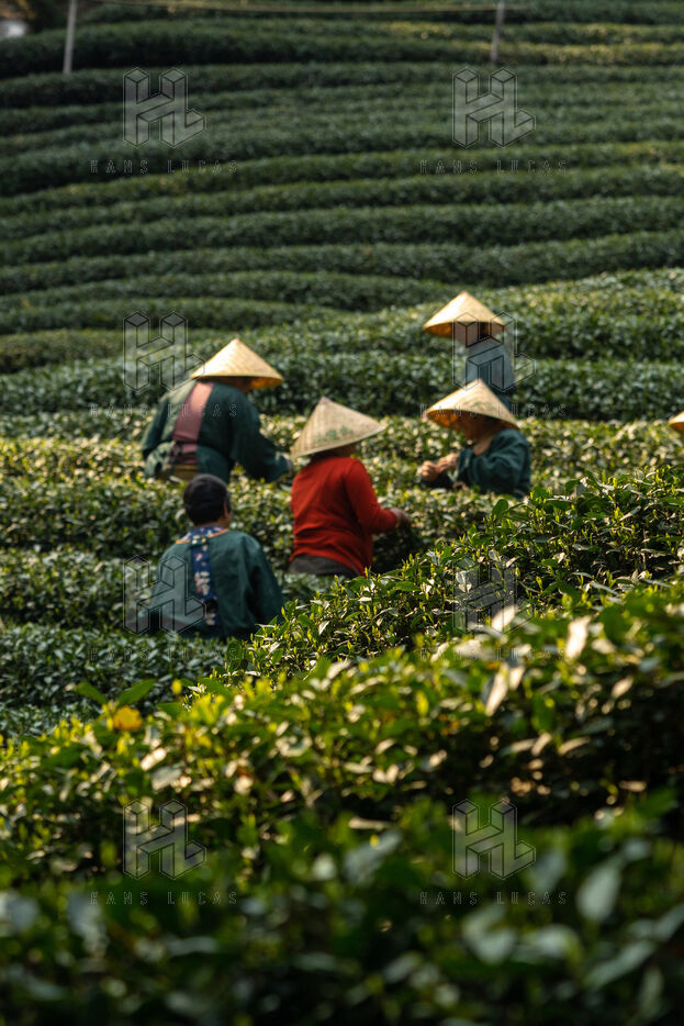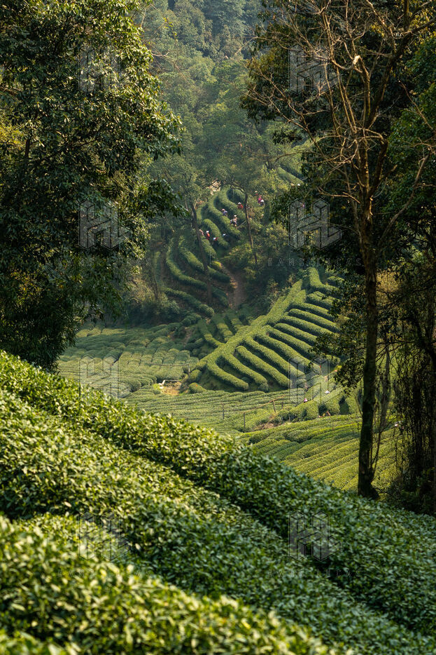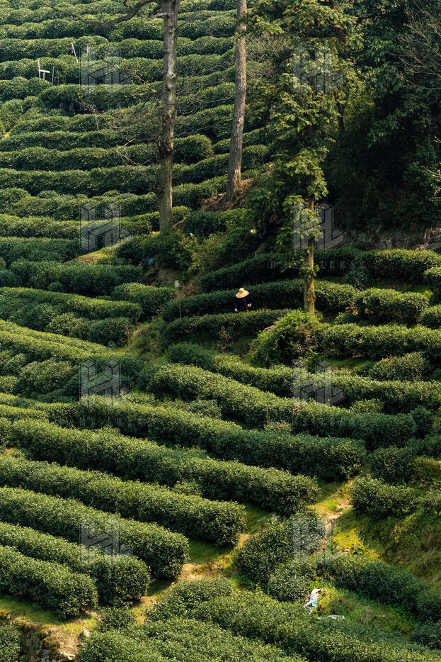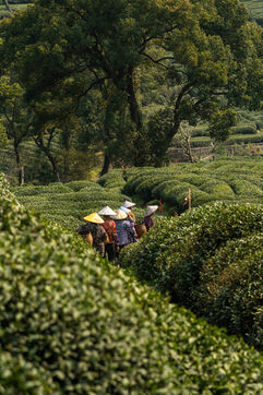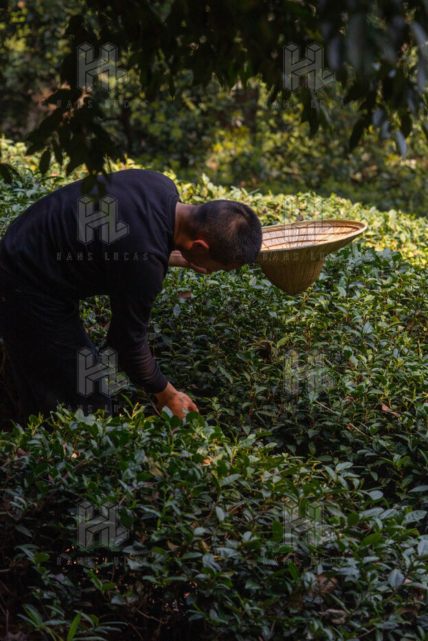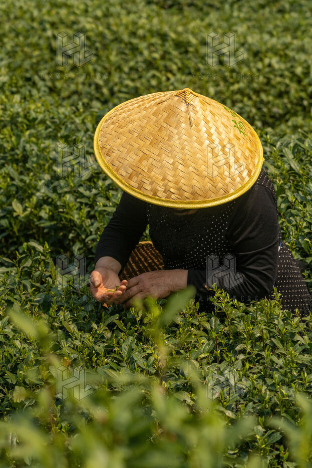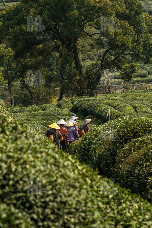 I visited Meijiawu Town, suburbs of Hangzhou, China, on March 26, 2025, at the very beginning of the harvest of this prized tea. The terraces were peaceful, and the air smelled fresh with spring growth. Workers moved methodically among the lush green rows, harvesting the first leaves while the morning light painted the landscape in soft highlights and shadows. The usual crowd of tourists had not yet arrived, allowing for a quiet, intimate climpse into a tradition cultivated over centuries.