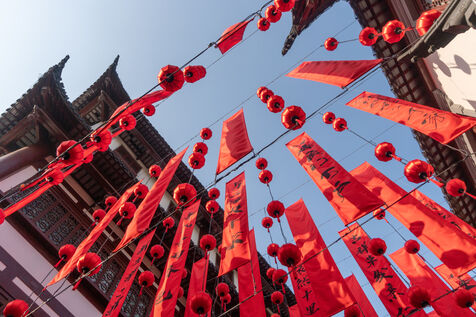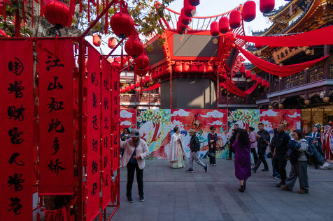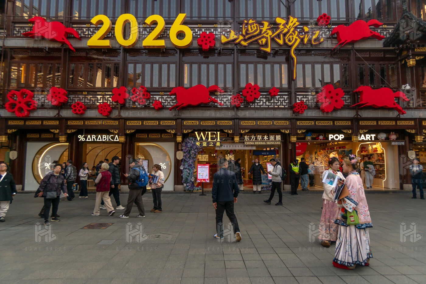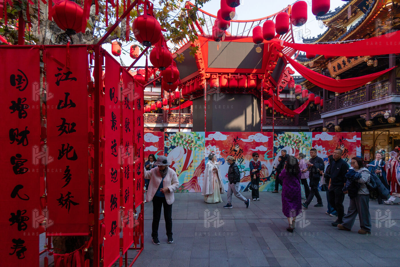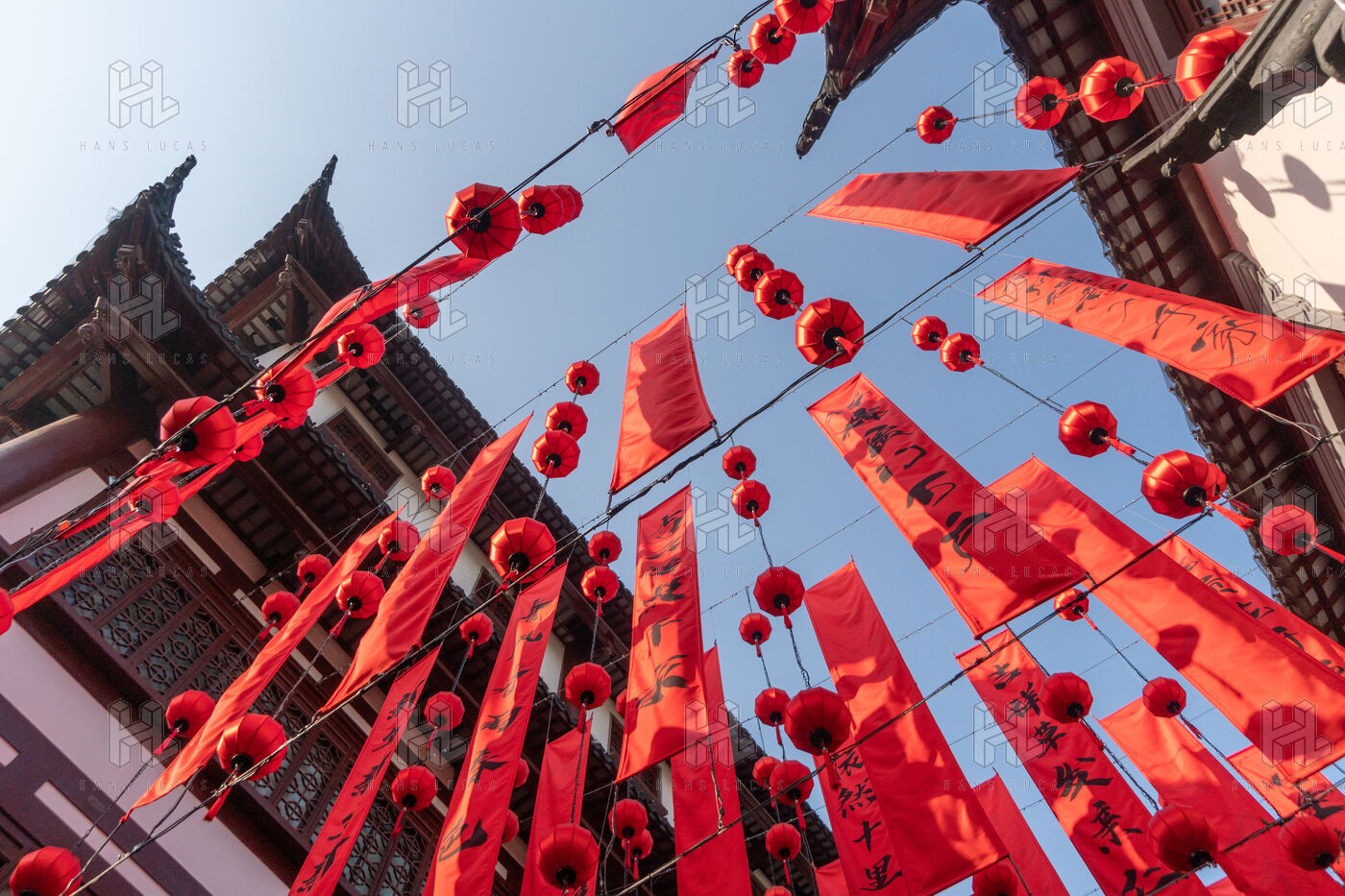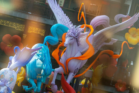 This series captures the final stages of lantern preparations at Yuyuan Garden ahead of the Lantern Festival in 2026. Photographed during the day, the images highlight the installation process, decorative details, and the presence of visitors moving through the historic market streets. A central lantern sculpture depicting horses reflects the Year of the Horse, offering a behind-the-scenes view of the festival before nightfall transforms the space.