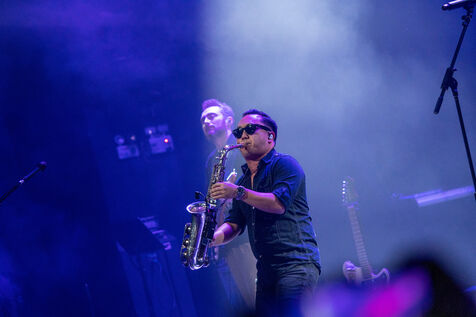 Dans l’une des salles alternatives les plus importantes de la ville, le groupe a donné vie à son son synthwave emblématique, mêlant visuels néon, saxophone en live et fortes atmosphères des années 80.
