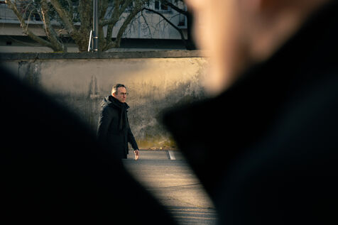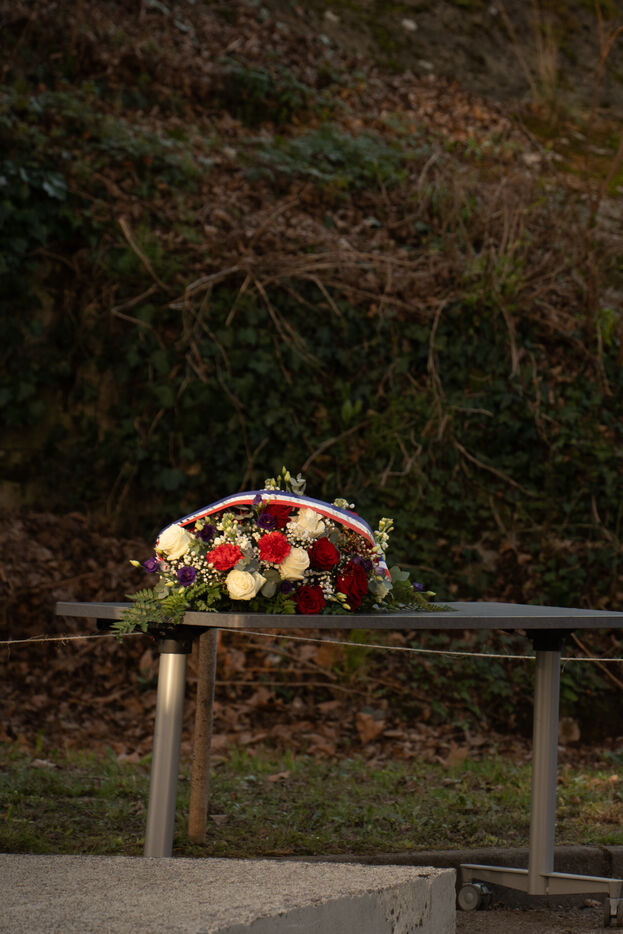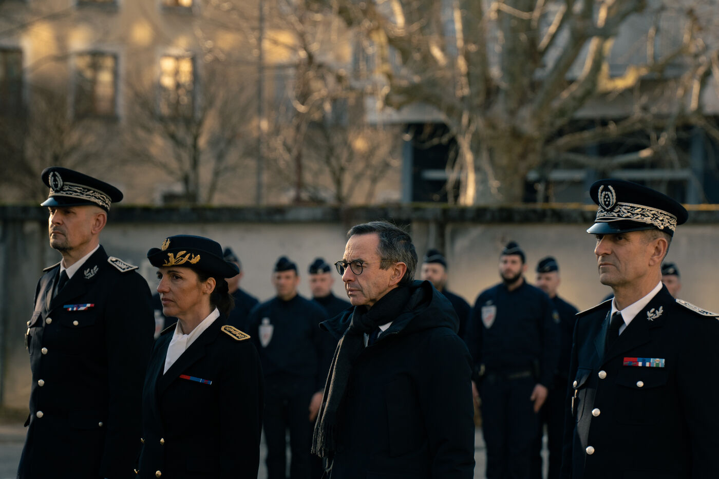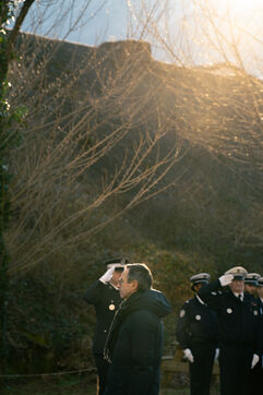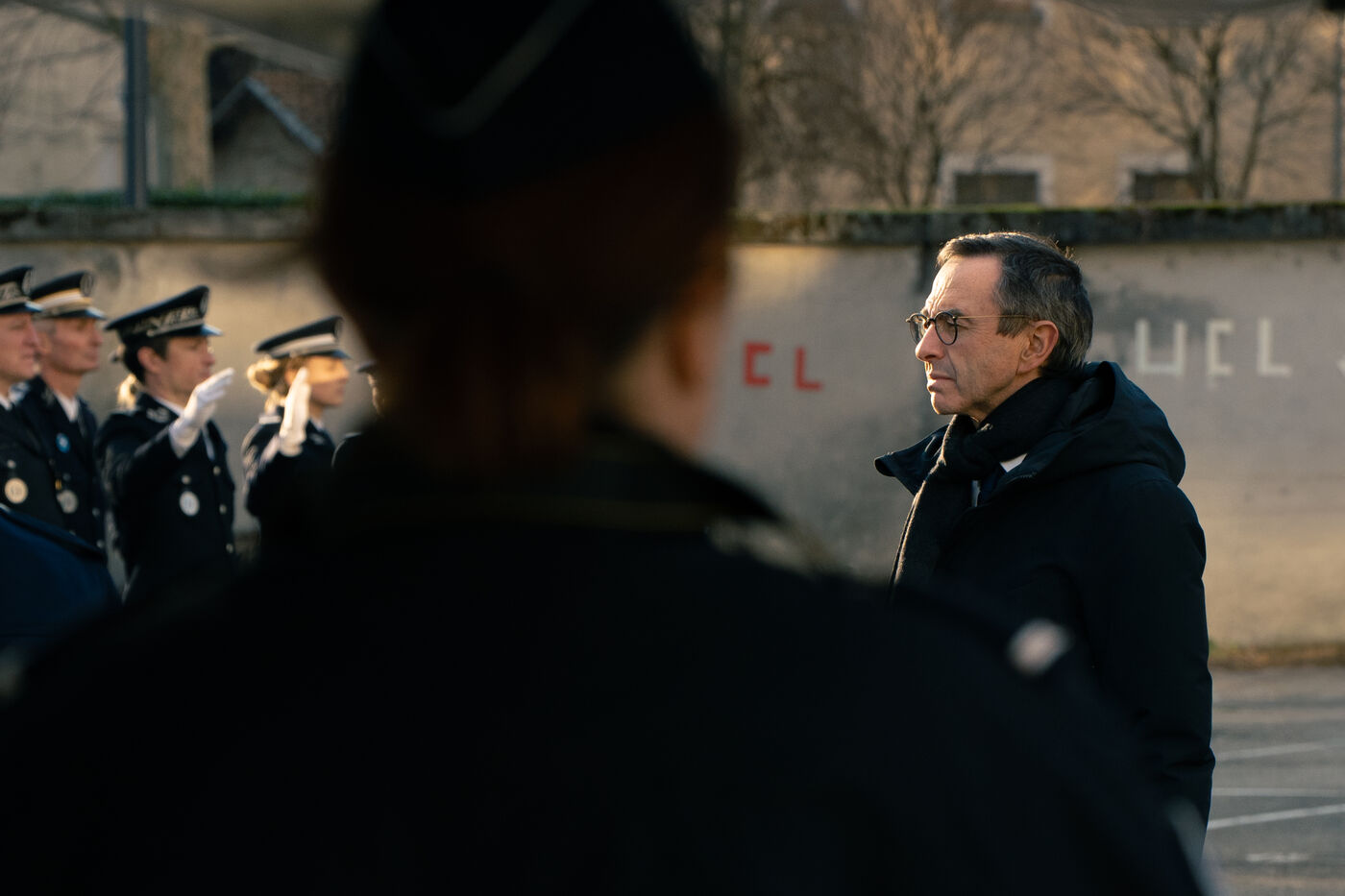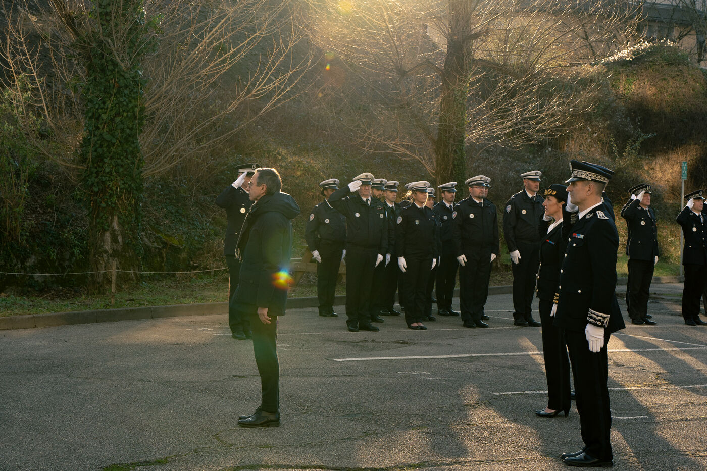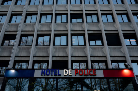 Bruno Retailleau, ministre de l'intérieur français a assisté à une cérémonie d'hommage aux policiers morts en service dans la cour d'honneur de l'hôtel de police de Grenoble, en Isère en France le 14 février 2025.