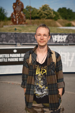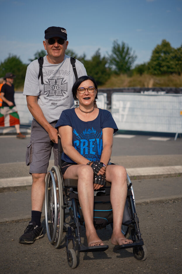 Portrait de festivaliers et de membres du staff présent au festival de musique extrême Hellfest 2023.