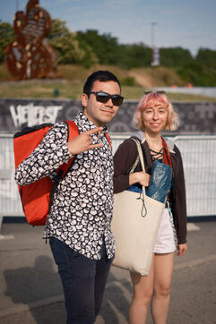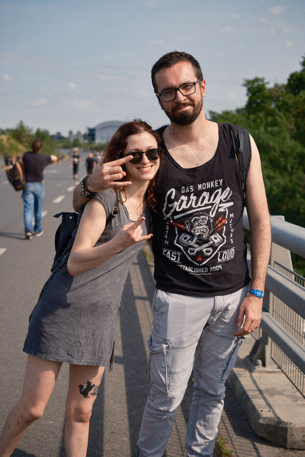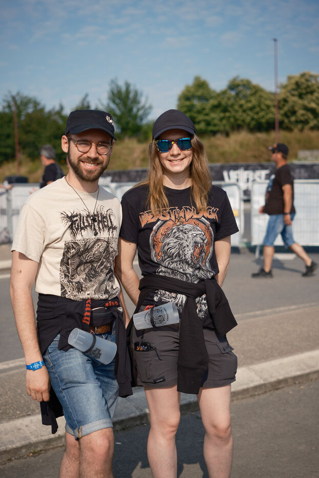 Portrait of festival-goers and staff at the Hellfest 2023 extreme music festival.