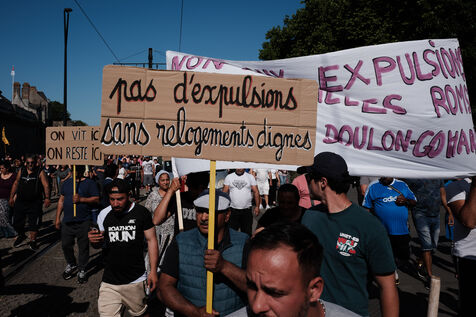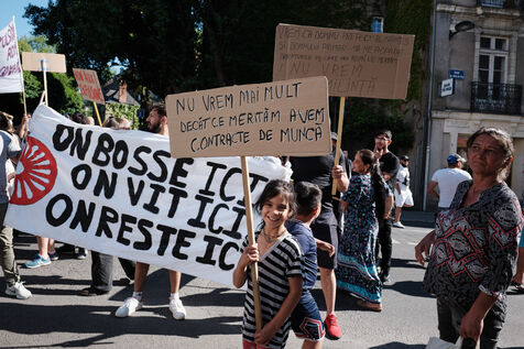 Demonstration against racism towards the Roma. Living and working with dignity in Nantes.
