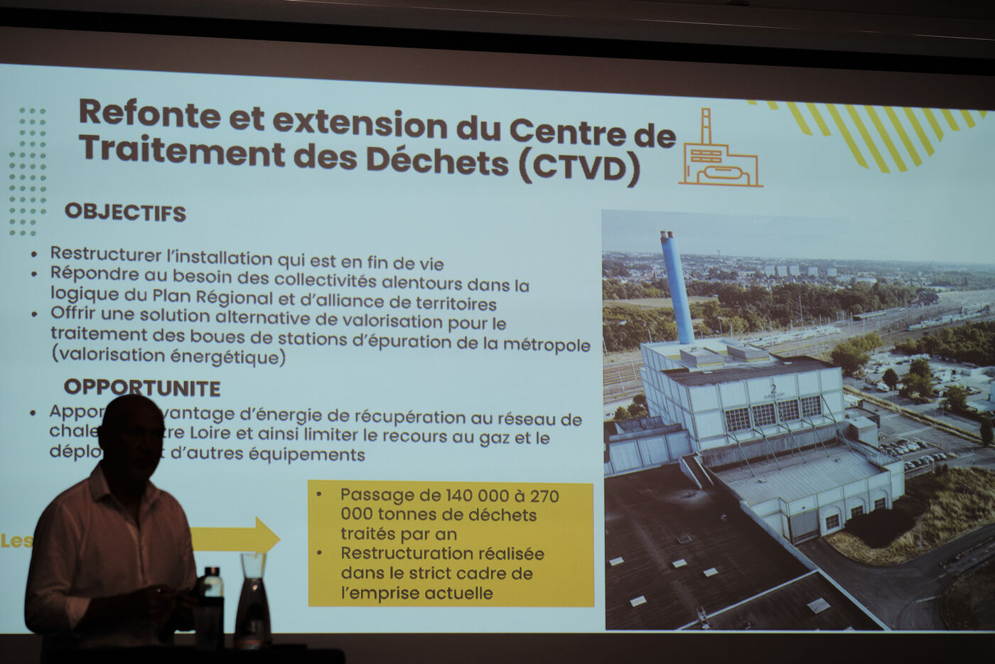 Reunion publique du pole d ecologie urbaine du projet de Nantes metropole affectant la zone de doulon les gohards et de la prairie de mauves, projet d incinerateur, traitement des dechets, station de traitement des eaux usees.
