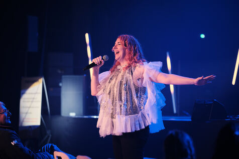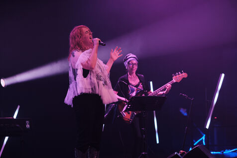 Singer Genevieve Morissette, known as La Morissette, on stage during a show for the Stop Cancer in Our Children charity.