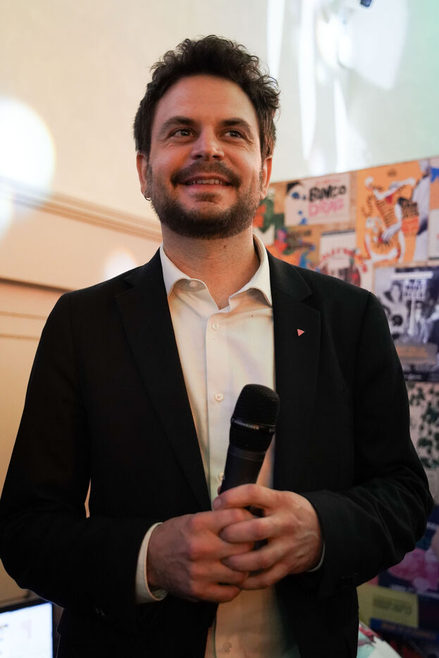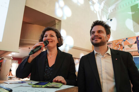 Jeanne Barseghian (Ecolos) and Florian Kobryn (LFI) with the activists at their headquarters in Strasbourg. They lose the second round of the municipal elections.