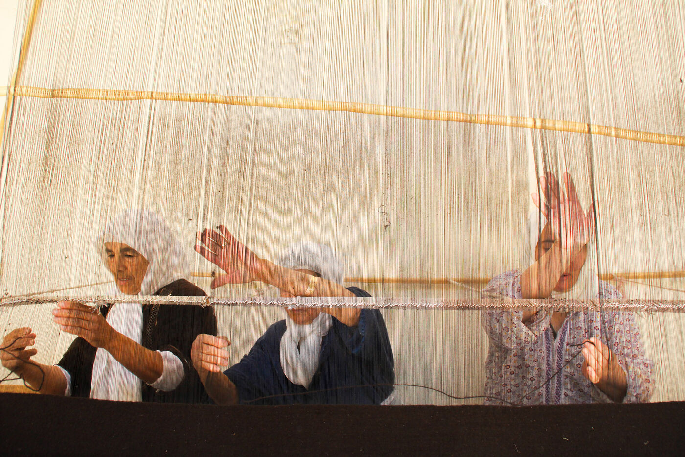 À Figuig, une petite oasis berbère à la frontière avec l'Algérie, la tradition du tissage est reservée aux femmes et se perpétue de génération en génération. Plus qu'un travail, c'est un moment d'intimité où les tisserandes se racontent des anecdotes et se confient sur leurs vies.