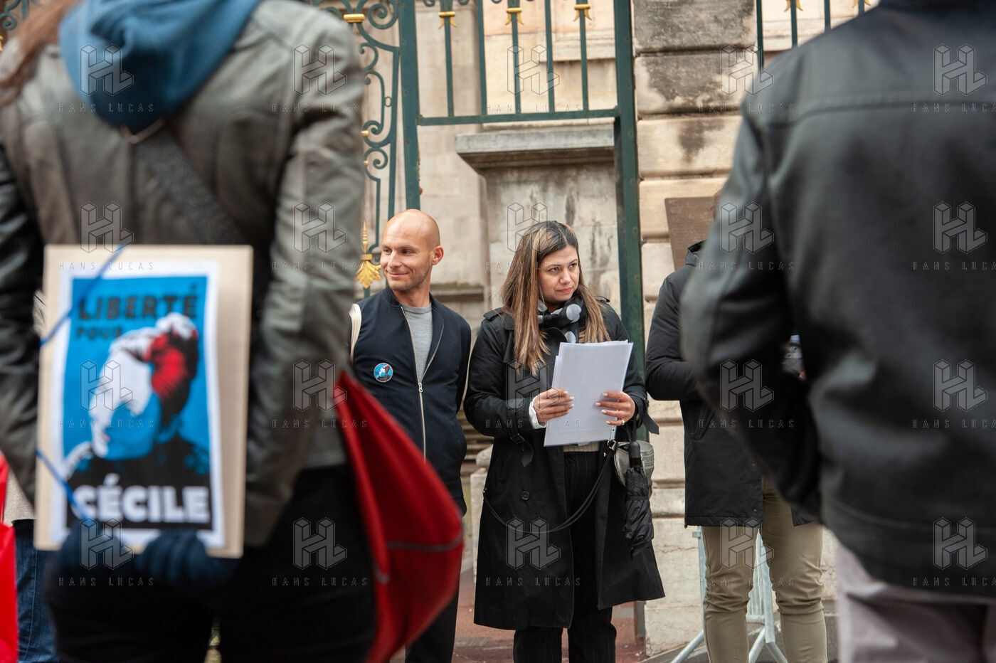À Lyon, dans le Rhône, en France, le 7 mai 2025, des centaines de personnes se rassemblent pour soutenir les deux otages français, Cécile Kohler et Jacques Paris, détenus en Iran depuis 3 ans.