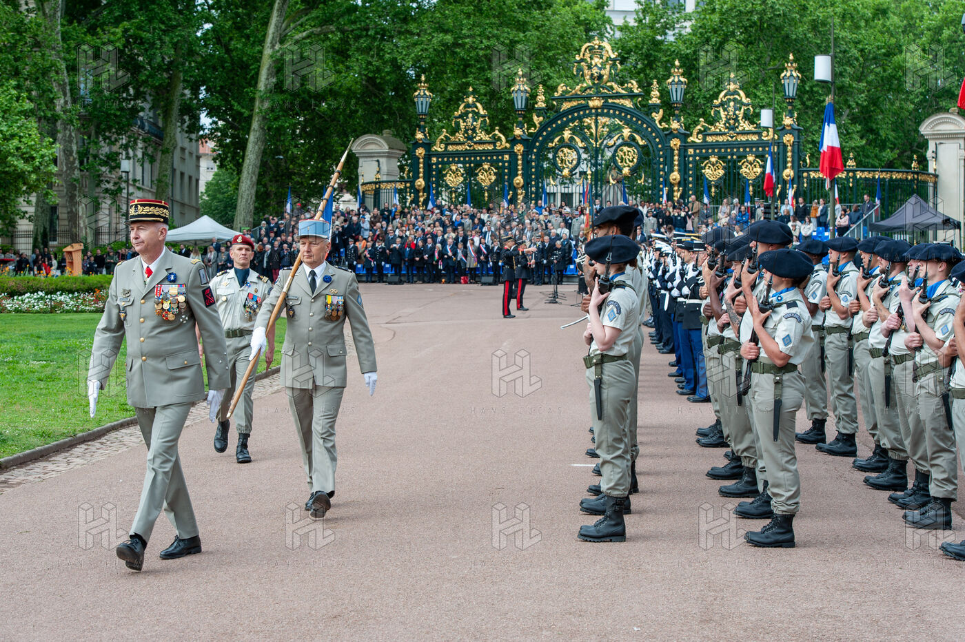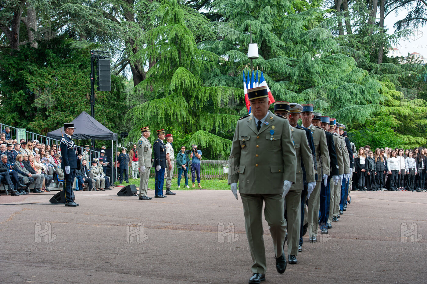 À Lyon, dans le Rhône, en France, le 8 mai 2025, des centaines de personnes se rassemblent en commémoration du 8 mai 1945. Reportage vécue à travers le point de vue du chef de corps Fabien Striffling donnants les ordres aux formations présentes. Racontant le déroulé de la cérémonie.