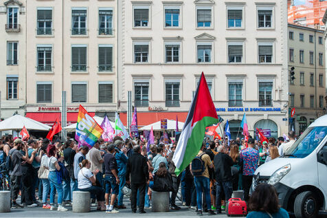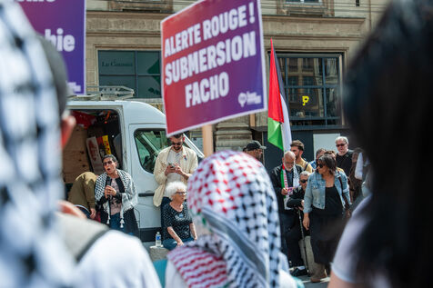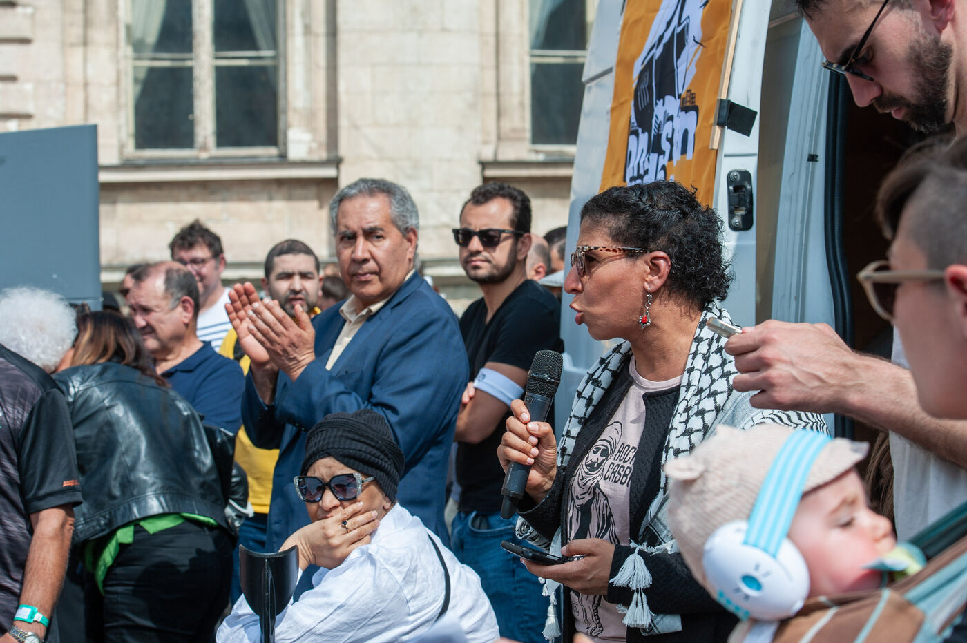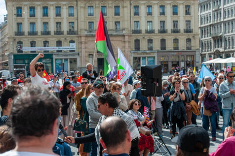 À Lyon, dans le Rhône France, le 11 mai 2025, un rassemblement est organisé contre l'islamophobie.