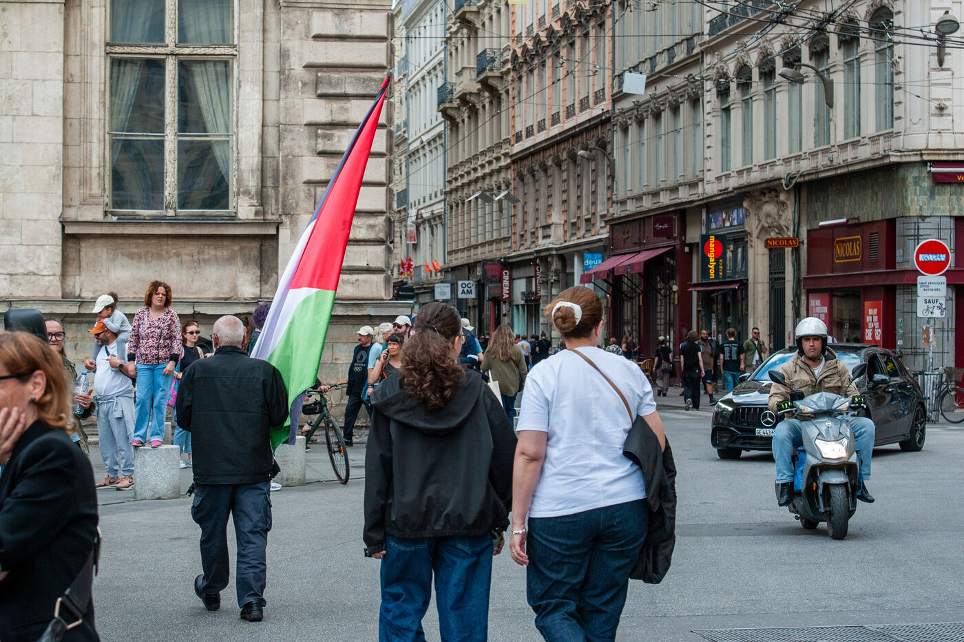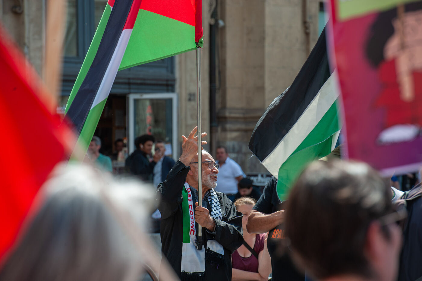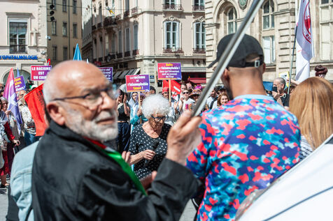 In Lyon, Rhône, France, on May 11, 2025, a rally was organized against Islamophobia. A reportage of 25 images experienced through Ibrahim, a veteran of the Algerian War, who was holding the Palestinian flag. He has been protesting every Saturday for a year and a half in support of Palestine. For him, the situation of the Palestinians is similar to that of the Algerians at the time.