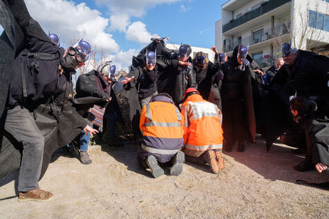 An action of the collective to denounce their opposition to the A69 project which would connect Castres to Toulouse via Verfeil and which constitutes a new project having negative consequences on the ecological and social plan.