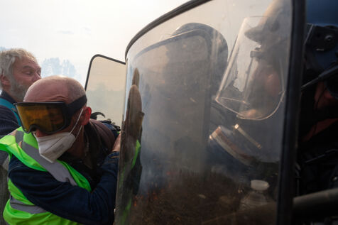 France, Saix (81710), 2023-10-22. Mobilization against the construction of the A69 freeway between Castres and Toulouse organized by several organizations: Extinction Rebellion Toulouse (XR), La Voie est Libre (LVEL), La Déroute des Routes, Attac and the Confédération Paysanne. A weekend of "Ramdam sur le macadam" demonstrations culminated in the occupation of the Crémade farm, now a ZAD. On Sunday, the militants were evicted by the forces of order to prevent any possible installation.