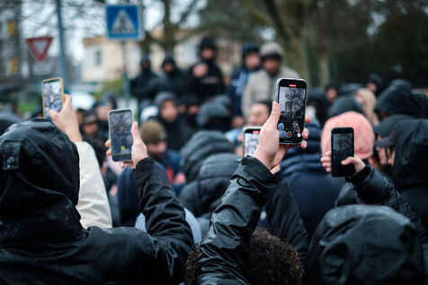 France, Toulouse, 2025-01-25. Rassemblement suite à la mort de Thibault Bilal tué dans le quartier de la Faourette à côté du métro Bagatelle à Toulouse le 24 janvier. D'après certains propos de l'entourage de Bilal, sa mort ferait suite à des violences policières.
