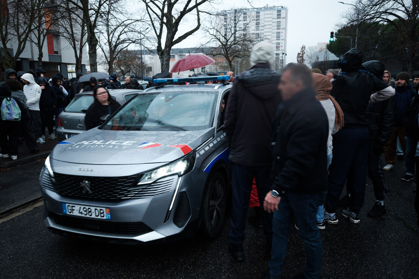 France, Toulouse, 2025-01-25. Rally following the death of Thibault Bilal, killed in the Faourette district near the Bagatelle metro station in Toulouse on January 24. According to Bilal's entourage, his death was the result of police violence.
