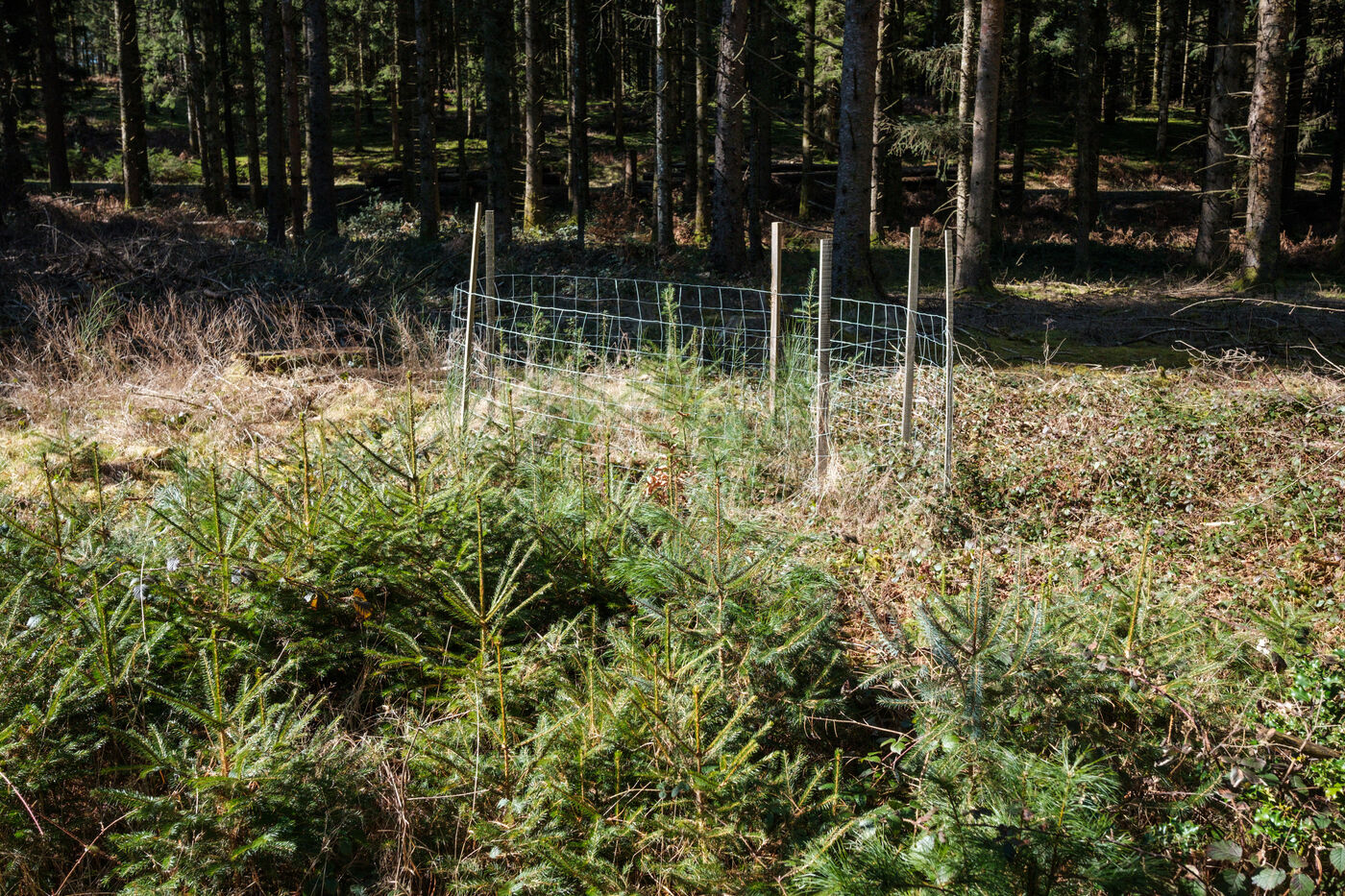 Les plantations sont réalisées de plusieurs manières : en exclot (ensemble des plants protégés par un grillage) ou parsemé dans des zones de trouée. Parfois les jeunes pousses issues de régénération naturelle côtoient celles plantés et le sylviculteur favorisera les plus vigoureuses en fonction de leurs caractéristiques et du contexte forestier.