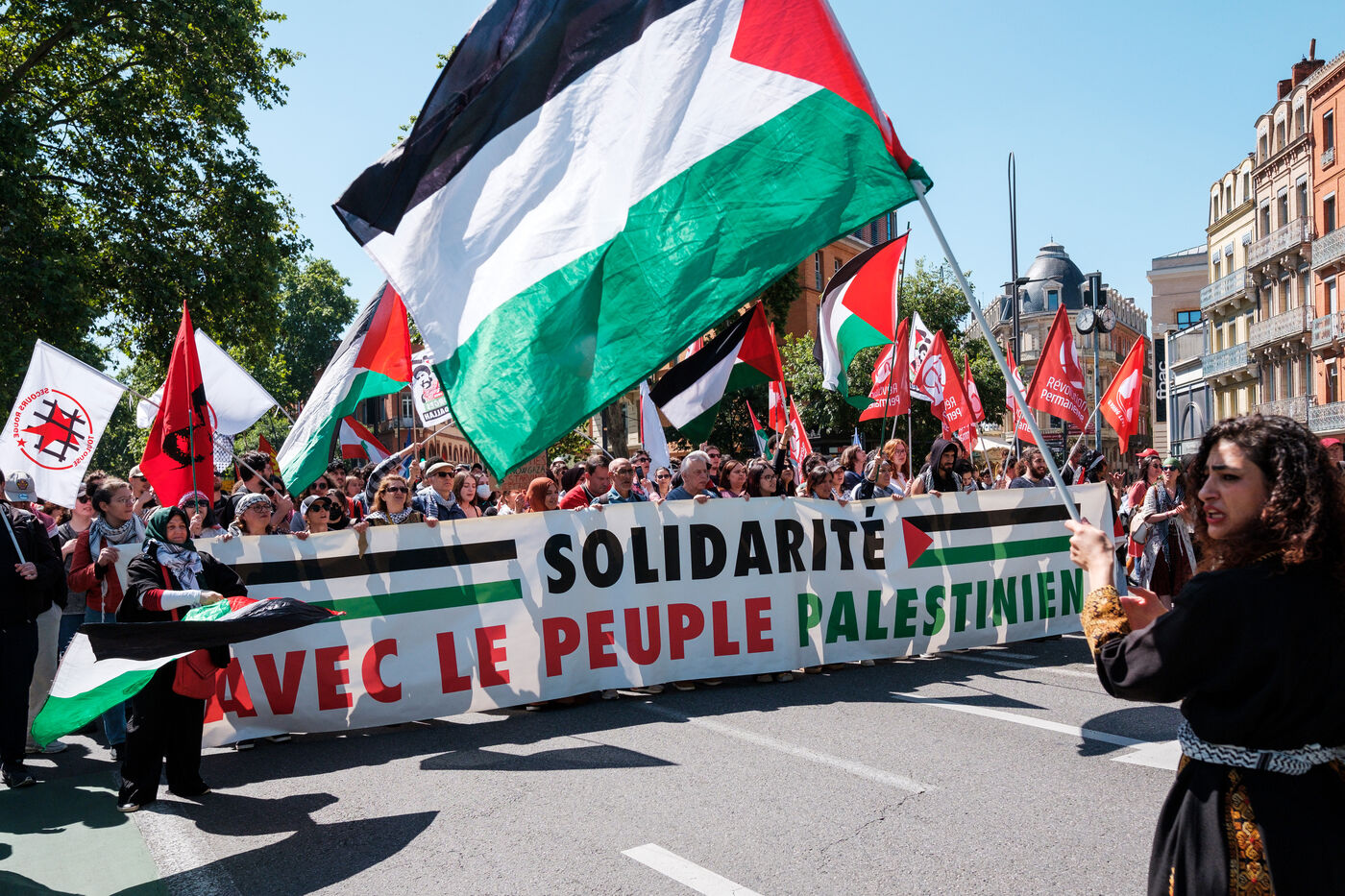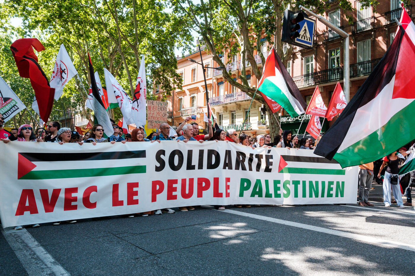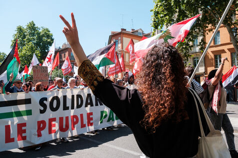 France, Toulouse, 2025-05-17. Demonstration in solidarity with Palestine on the 77th anniversary of the Nakba, the beginning of Israel's colonial project in 1948 that displaced hundreds of thousands of Palestinians from their land.