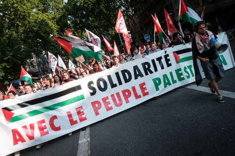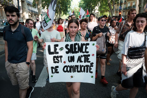 France, Toulouse, 2025-06-12. Demonstration in Toulouse to denounce the French government's inaction in the face of the ongoing genocide in Gaza and Israel's detention of the Freedom Flotilla passengers.