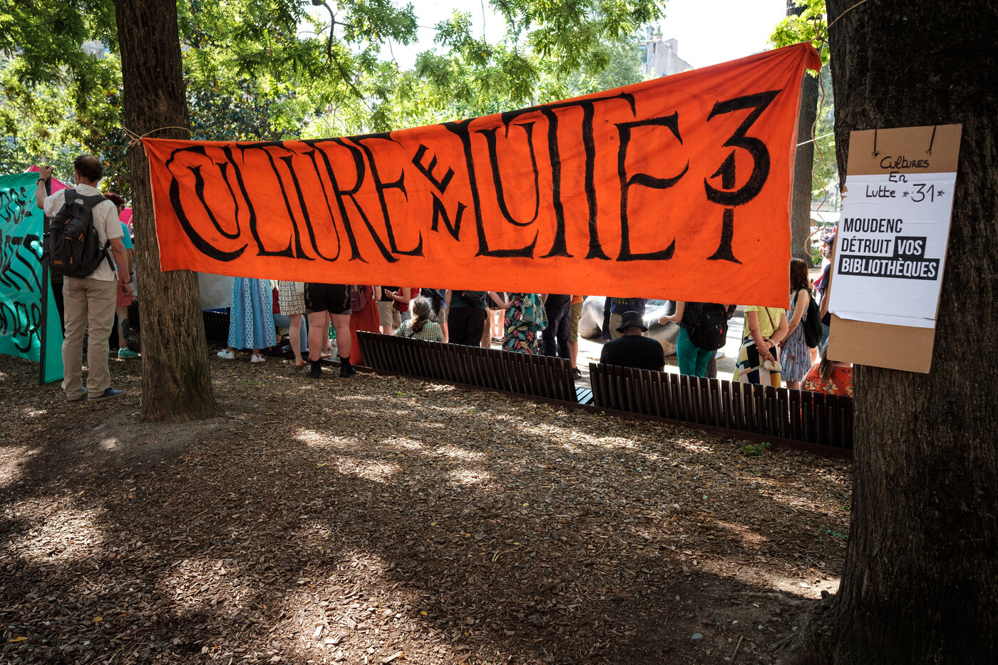 France, Toulouse, 2025-06-20. Gathering in front of the Capitole building in Toulouse, where the city council is meeting, to demonstrate against Jean-Luc Moudenc's austerity policy in the cultural and social sectors by organising a counter-council meeting.