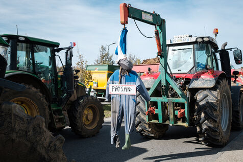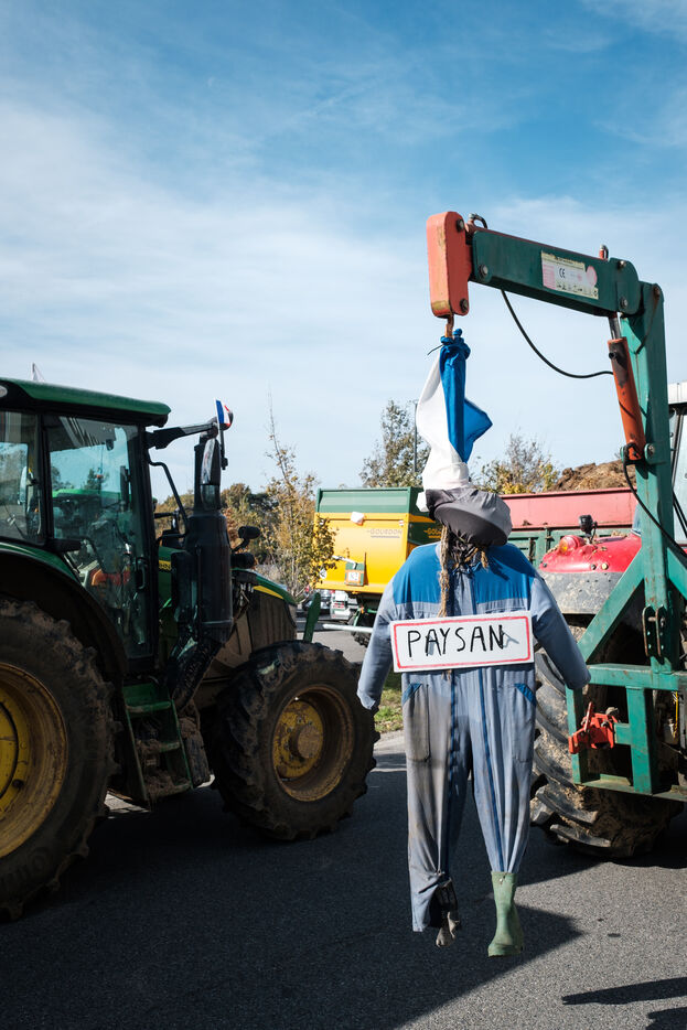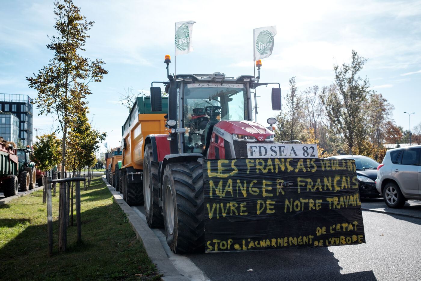 obilization of farmers from the FNSEA, JA, and Ultra unions of the A64 against MERCOSUR and Macron's agricultural policy during his visit to Toulouse, Occitanie, France, on November 12, 2025.