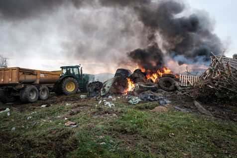 Les agriculteurs bloquent l'A64 à Cazères