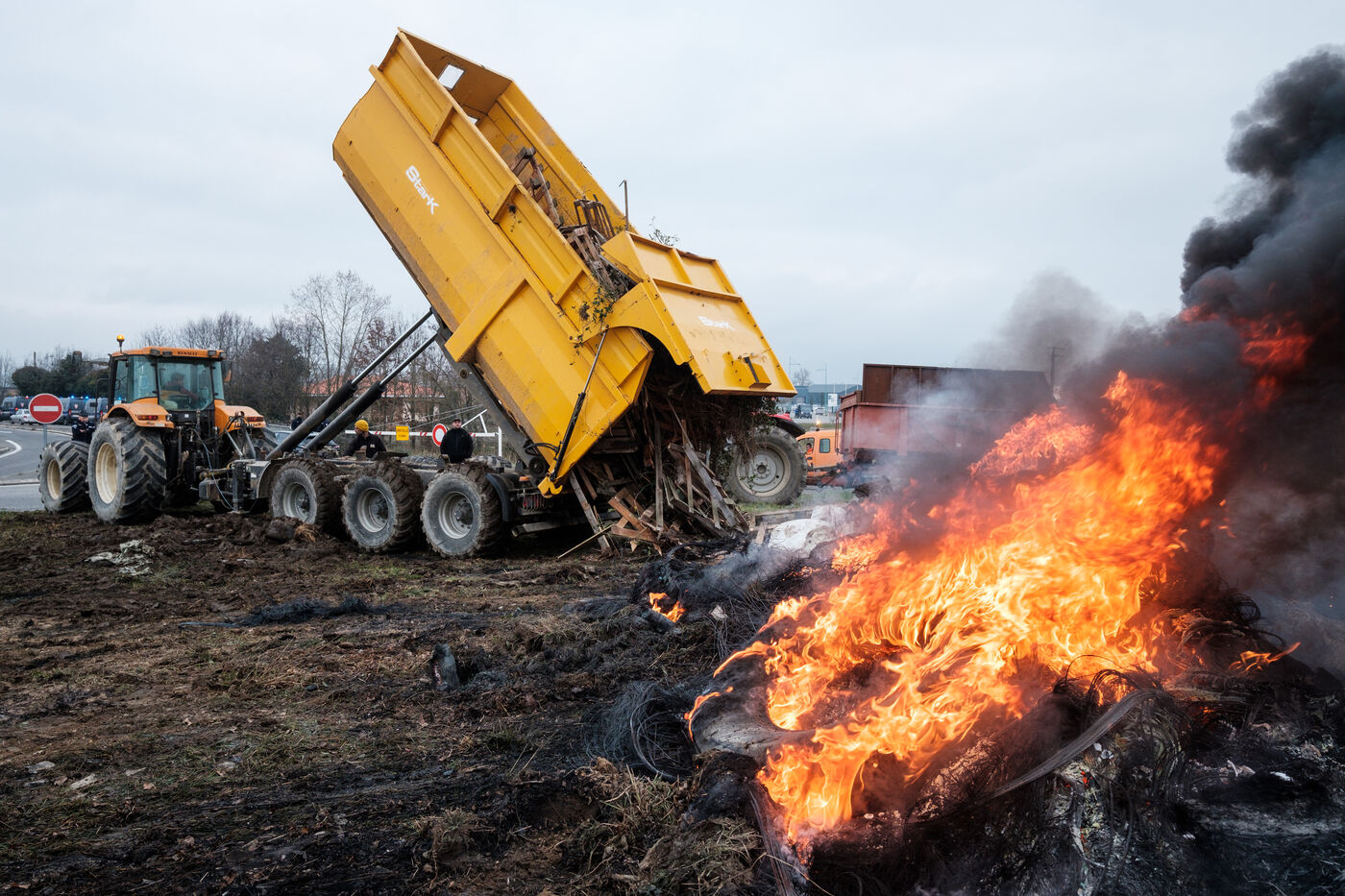 Farmers block the A64 motorway at Cazères