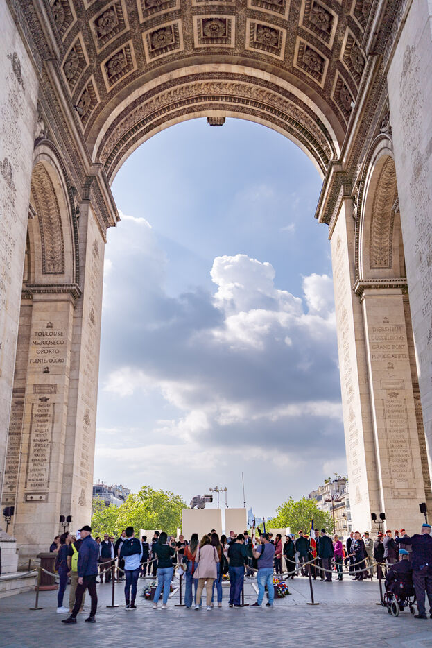The Arc de Triomphe, a symbol of victory, unity, and remembrance, remains silent, inviting reflection before the collective sacrifice is honored. A May 8 eve where the past intertwines with the present, through the lens of the camera.