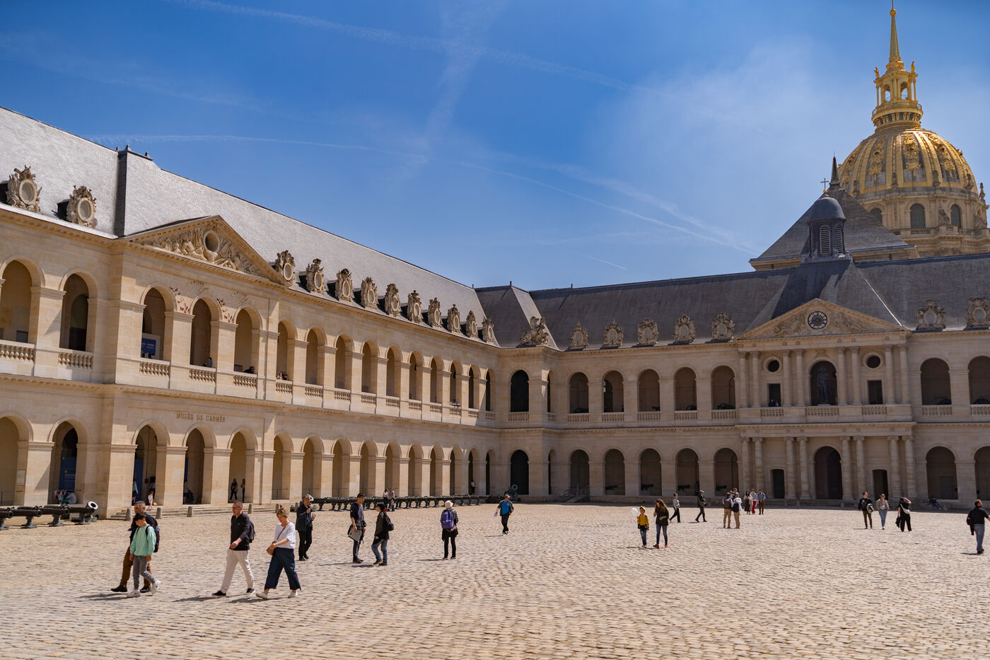 Les Invalides commands respect at first sight. Its golden dome shines over a space where stone carries the memory of a nation. Inside, calm prevails. The galleries, chapels, armories, and tombs come together in quiet harmony.