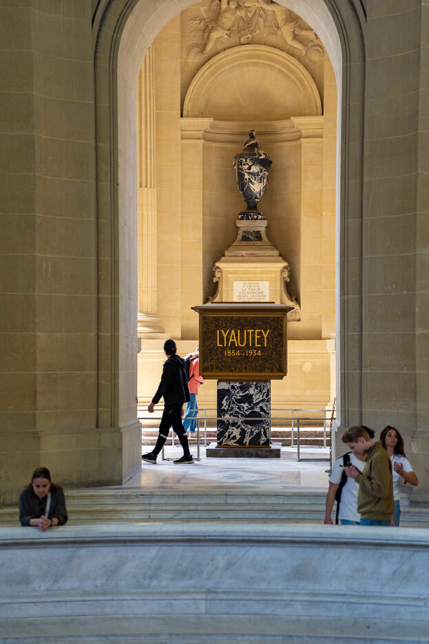 Au cœur de cette série, un instant suspendu : la tombe du maréchal Lyautey. Située à l’écart, elle se dévoile avec une sobriété élégante. Le jeu d’ombre et de lumière sur la pierre, les inscriptions discrètes, la présence de l’Histoire qui flotte dans l’air — tout invite au recueillement.