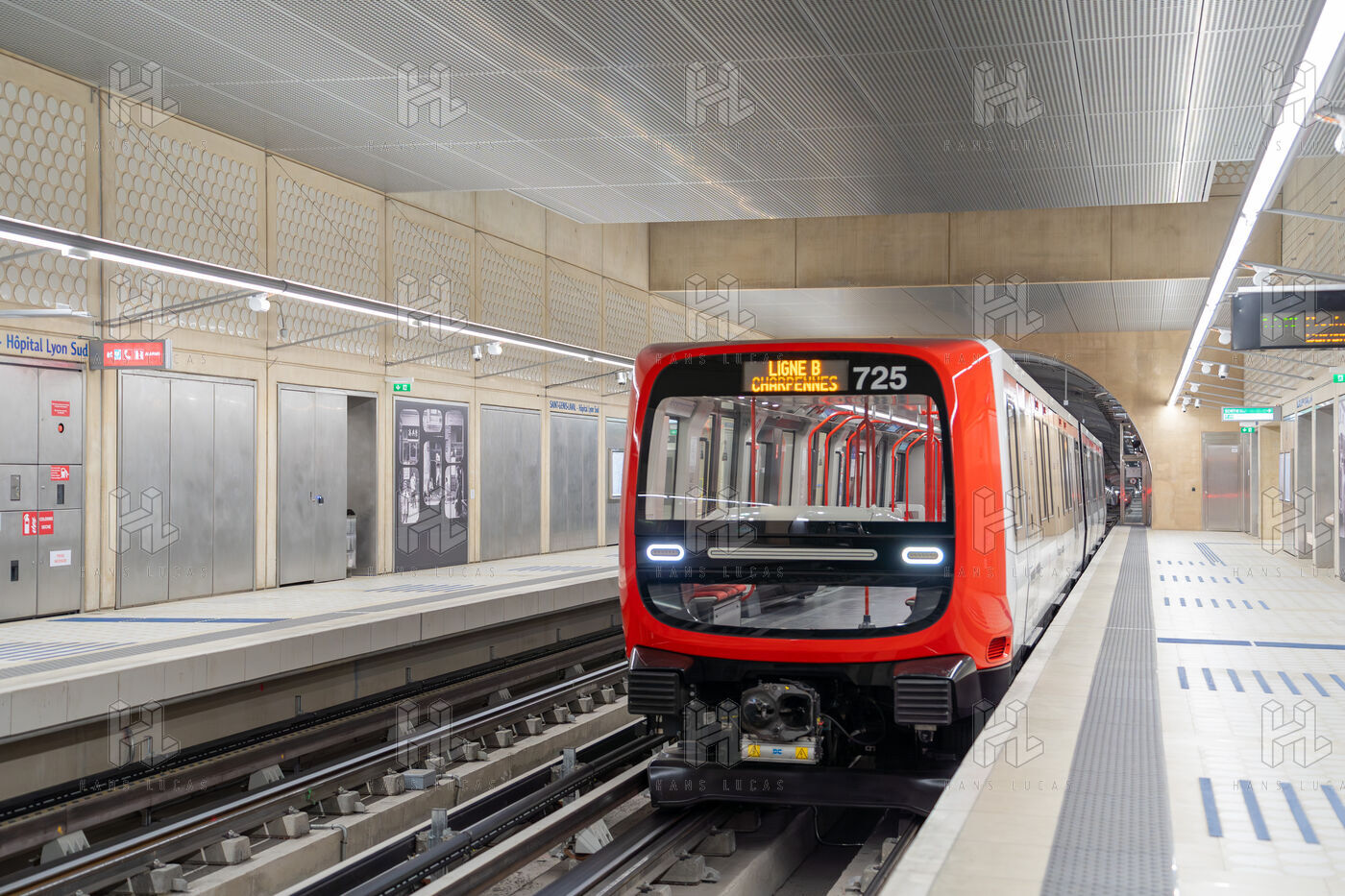 Metro Line B, one of the main lines of the TCL network in Lyon, connects several important neighborhoods across the city. These two images showcase its modern design and its crucial role in the daily mobility of Lyon residents.