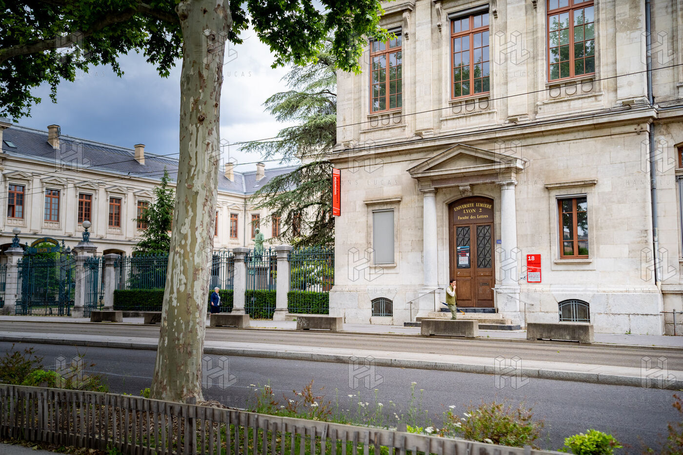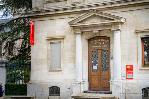 Entre classicisme et effervescence urbaine, la façade de l’Université Lyon 2 – Campus Berges du Rhône incarne l’histoire et la vie étudiante lyonnaise.