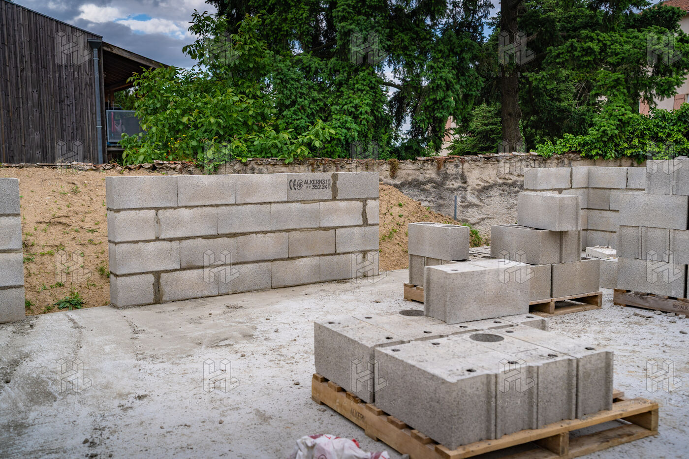 Among rolling hills and quiet fields, the foundations of a new home emerge in the rural outskirts of Lyon.