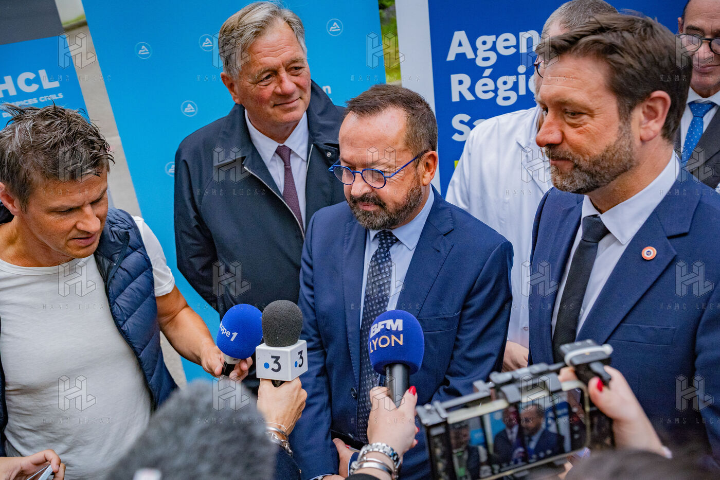 The inauguration gathered key figures: Yannick Neuder, Minister in charge of Health and Access to Care; Fabrice Pannekoucke, President of the Auvergne-Rhône-Alpes Region; Cyrille Isaac-Sibille, Member of Parliament from the Democratic group; and Raymond Le Moign, Director General of the Hospices Civils de Lyon (HCL).