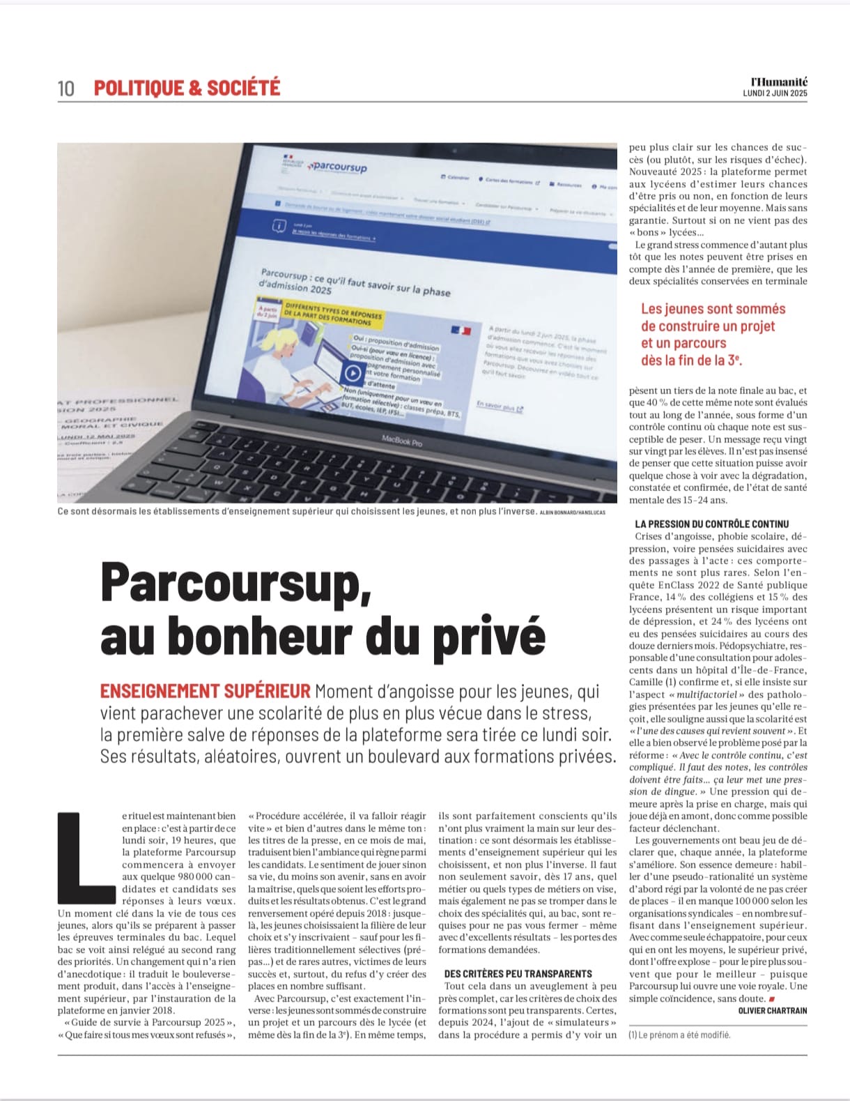 Albin Bonnard Publications Séries / Archive Culture — Fashion — Guerre et conflits — Lyon — Politique — Société — Spiritualité — Sport Sélection de séries Libération 14/11/2025 | N°13787 Le Nouvel Obs nº 3190 · 06/11/2025 LE FIGARO - N° 25 251 - Cahier N° 2 LSA - 23/10/25 Ça m'intéresse - Octobre 2025 The Washington Post - Un parc à thème nationaliste se lève en Europe L’humanité - Parcoursup, au bonheur de l’enseignement privé