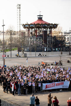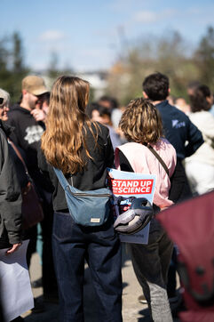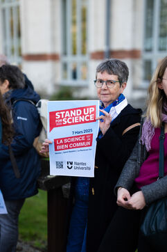 Face à l'obscurantisme affiché par Donald Trump et à la réduction des budgets dédiés à la science, les universitaires et politiques se mobilisent partout dans le monde autour du mouvement Stand Up For Science comme à Nantes en France le 7 mars 2025.