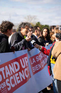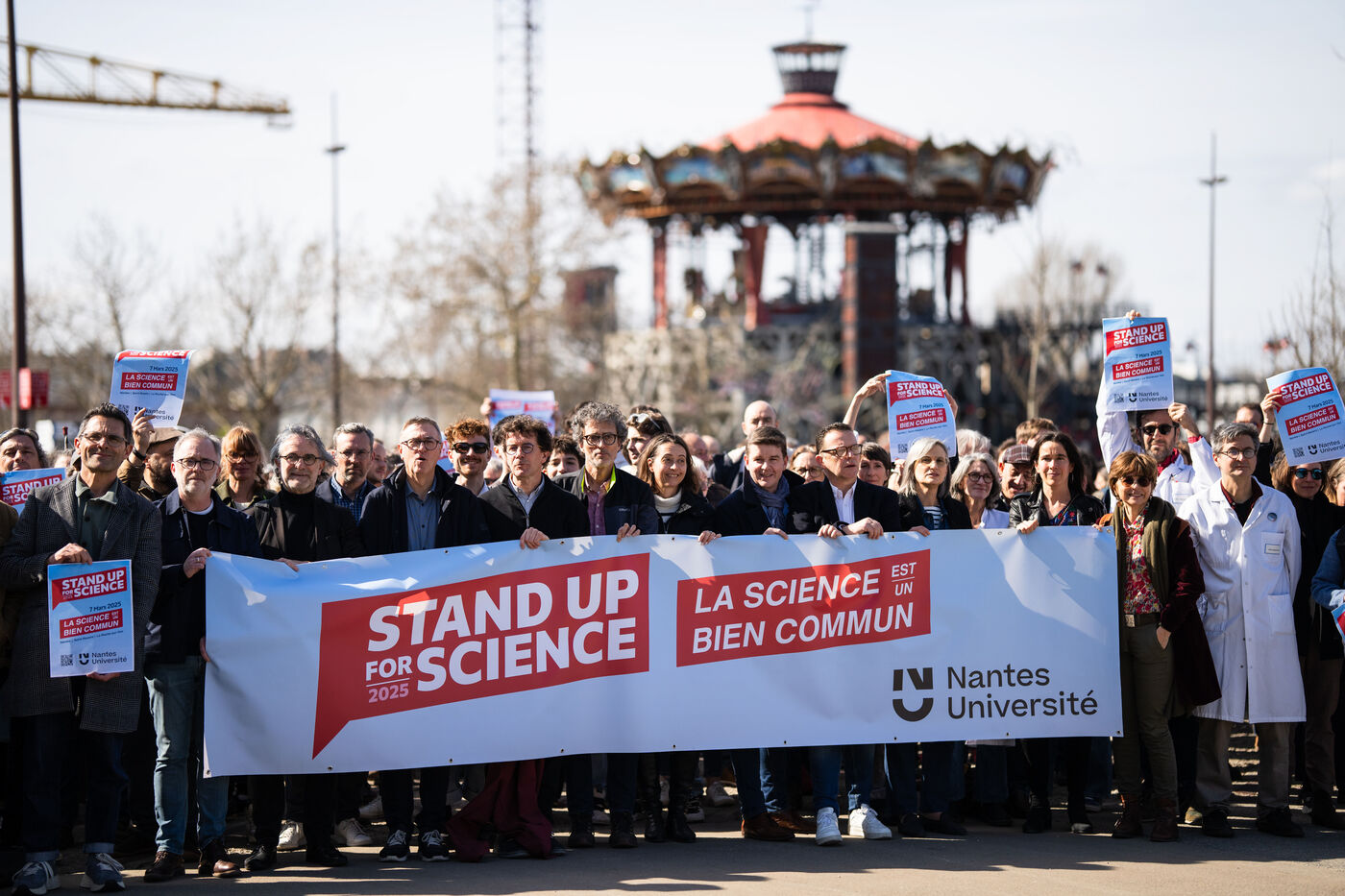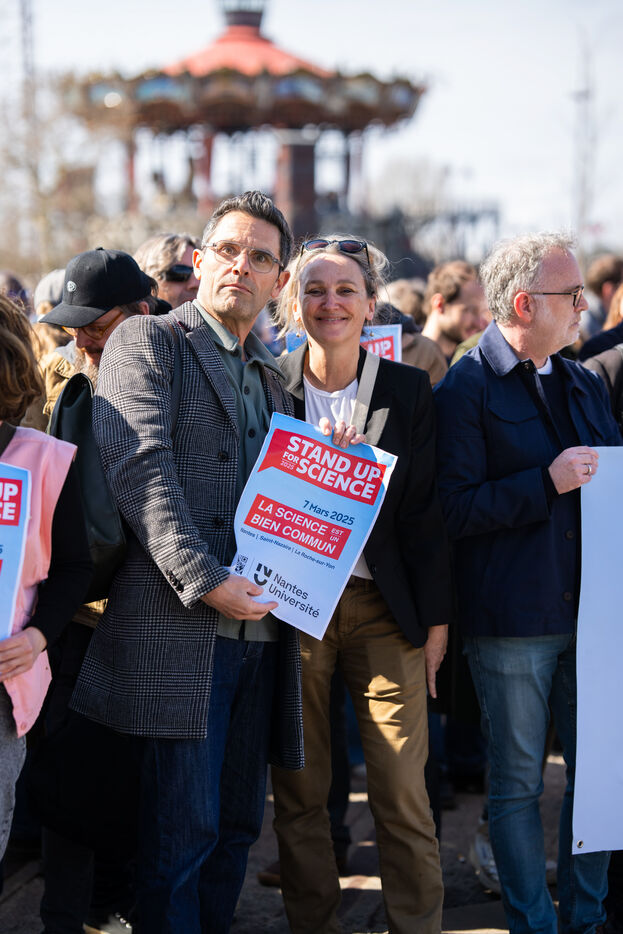 Faced with the obscurantism displayed by Donald Trump and the reduction of budgets dedicated to science, academics and politicians are mobilizing all over the world around the Stand Up For Science movement, as in Nantes in France on March 7, 2025.