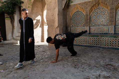 "Movement is an expression of gratitude; it's my strength," he affirms. He dances every day, in the streets, in the squares, observing his city and the sea, which he prefers to neighboring Europe: "My dream is to go to sub-Saharan Africa or Brazil, where they really dance." Today, he wants to pass it on. Every evening, in the street, he leads young people from Tangier in free-form dance sessions, without structure or resources, just shared passion. Laughter, falls, and progress become their shared stage. The next day, back to the keyboard, eight hours of screen time, but in his heart, a certainty: