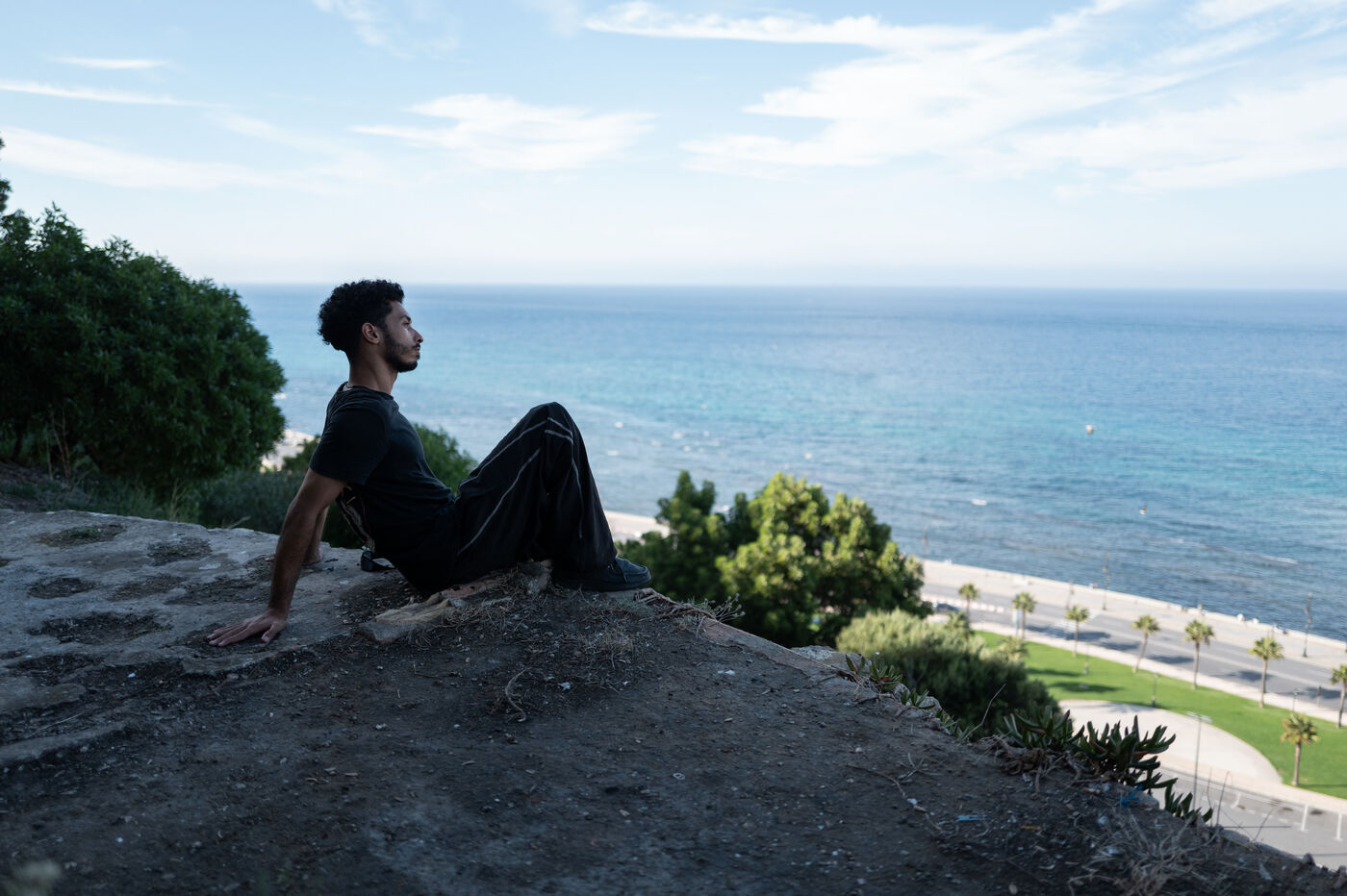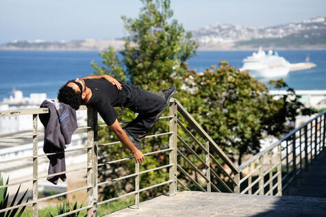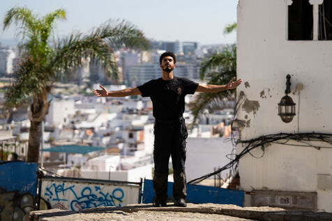 Yassine, 23 ans, est né, a étudié et travaille à Tanger comme développeur web. Ses journées sont rythmées par les écrans et les projets pour des clients étrangers, un emploi alimentaire qu’il supporte grâce à sa passion : la danse. Attaché à sa ville malgré le manque d’opportunités, il veut la faire bouger. Opéré d’un pied bot enfant, on lui avait dit qu’il ne ferait jamais de sport. Par défi, il s’initie au « parcours » et devient traceur, courant Tanger à la verticale. Puis la danse s’impose à lui : break, classique, contemporaine.