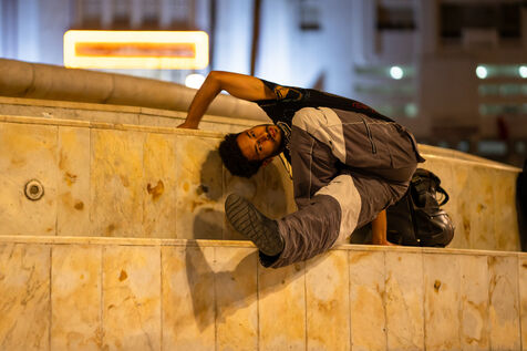 Yassine, 23, was born, studied, and works in Tangier as a web developer. His days are filled with screens and projects for foreign clients, a day job he sustains thanks to his passion: dance. Attached to his city despite the lack of opportunities, he wants to revitalize it. Having had surgery for a clubfoot as a child, he was told he would never play sports. As a challenge, he took up parkour and became a traceur, running vertically through Tangier. Then dance became his calling: breakdancing, classical ballet, contemporary. Under the name YAPAC_, he adapted the moves to his body, won competitions, joined a dance troupe, participated in the DATI DROUK artist residency in Rabat, before returning to Tangier.