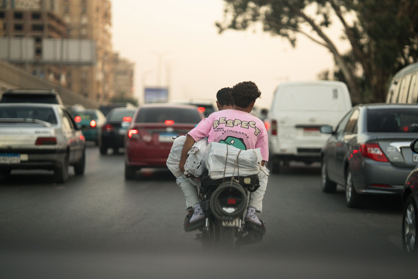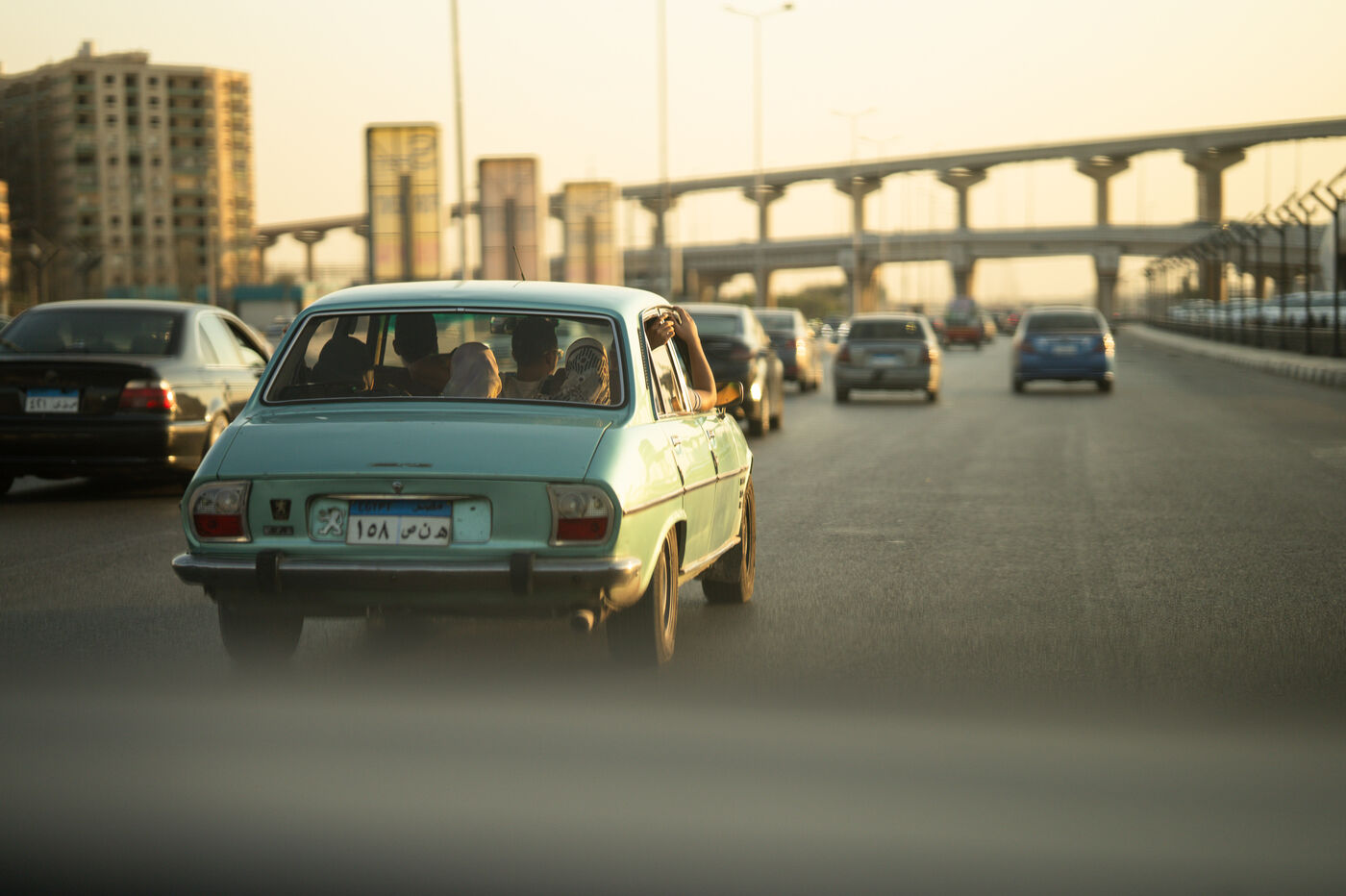 La conduite au Caire releve de l’exploit, si vous etes inexperimente, confiez votre trajet et votre vie a un taxi confirme qui vous embarquera en evitant passantes et passants avec ou sans bebe, tuktuk et charettes, motards sans casque et surcharges, trottoirs debordant de commerçants ambulants, chevaux, dromadaires, passant à vive allure d’une voie à un autre, doublant à gauche autant qu’a droite, usant du klaxon autant que de la pédale d’accelerateur. Bien attache a votre ceinture de securite vous aurez tout le juste le temps d’apercevoir tel monument ou le soleil se coucher sur le Nil et arriverez souvent en retard mais a bonne destination au centre ville du Caire, le 11 septembre 2025.
