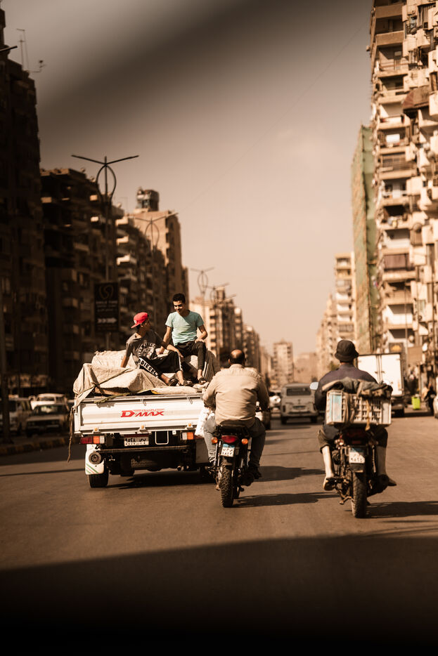 Driving in Cairo is a feat in itself. If you're inexperienced, entrust your journey and your life to a seasoned taxi driver who will take you safely around pedestrians (with or without babies), tuk-tuks and horse-drawn carts, motorcyclists without helmets and overloaded vehicles, sidewalks overflowing with street vendors, horses, camels, speeding from one lane to another, overtaking on the left as often as on the right, using the horn as much as the accelerator. Securely fastened in your seatbelt, you'll barely have time to glimpse a monument or the sun setting over the Nile, and you'll often arrive late, but at your destination in downtown Cairo, on September 11, 2025.