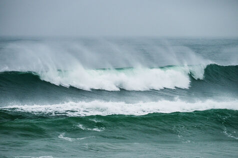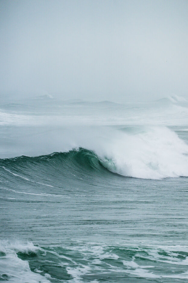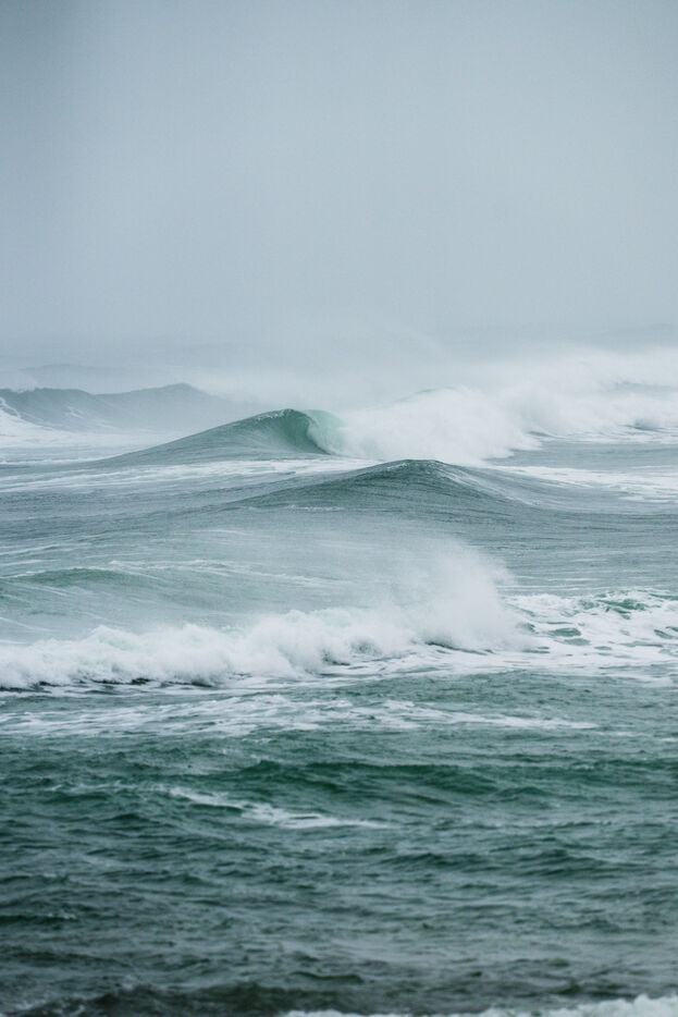 Waves formed by a northeast wind blowing at 50 miles per hour provide ideal conditions for thrill-seeking surfers at Pointe de la Torche in Brittany, France, on February 14, 2025