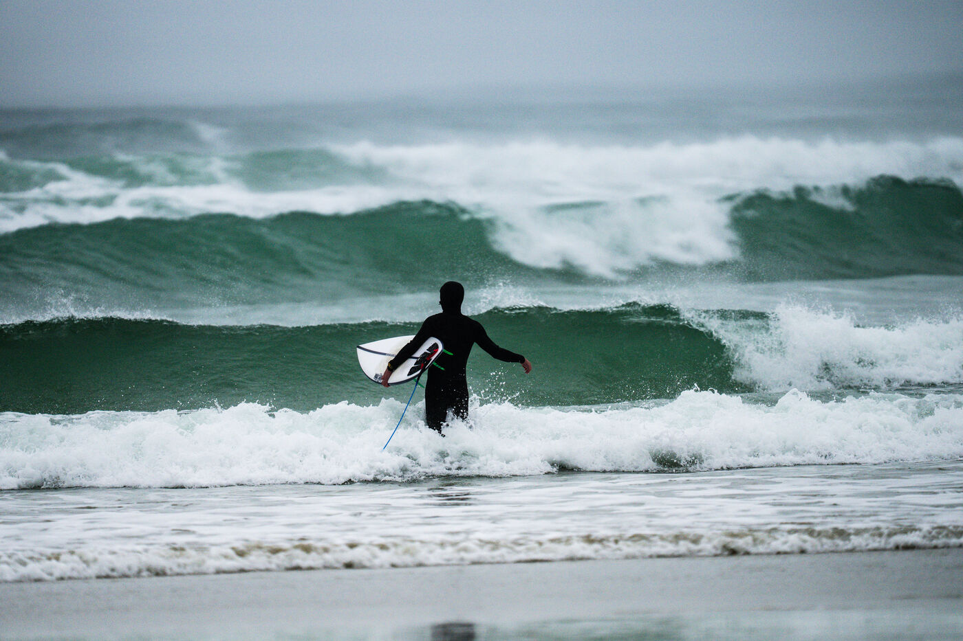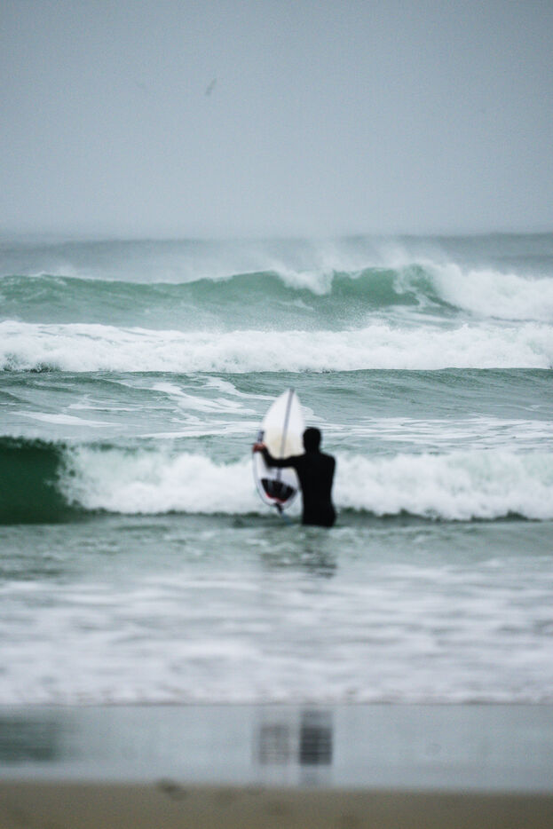 SURFING AT POINTE DE LA TORCHE IN WINTER