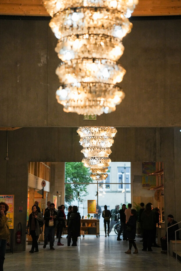It's a tongue-in-cheek gesture, a snub, a bold move, a defi: MIXT in Nantes, a theater for dance and music under the supervision of the Loire Atlantique department, will open its doors in December 2025 after three years of construction led by architects Matthieu Poitevin and Thomas Brétignière of the Marseille-based agency VA JOUER DEHORS and designed by artist Blaï Mateu Trias of the Baro d'Evel company for the indoor restaurant QUI SOM. Catherine Blondeau, director of the venue, assisted by Juliette Kaplan, has created a living space that breaks with contemporary theaters but interprets the classics of Italian-style theaters, with gigantic chandeliers made from recycled materials, a hall that transforms into lounges, and a multitude of residences, studios, and performance spaces seating 100 to 1,000 people. The architectural design is striking, raw, intriguing, and soothing, conducive to encounters, all set in a garden covering more than a hectare,