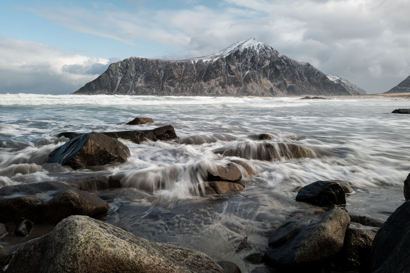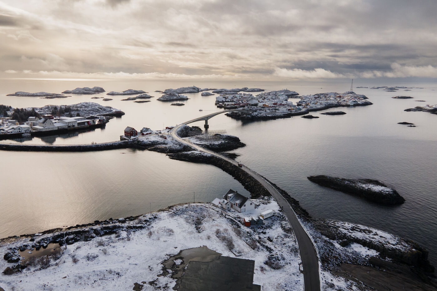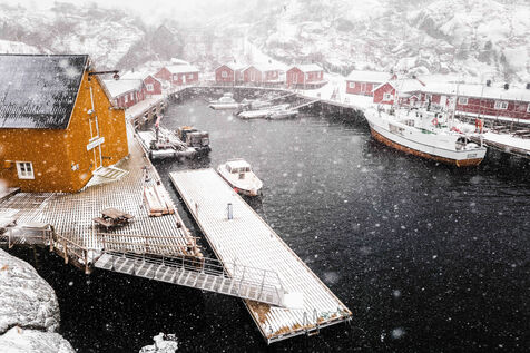 Experienced hikers flock to the Lofoten Islands for their excellent network of marked trails, which are wet, vertiginous, and exhilarating, such as the Innersand route to Ryten or the 2,000 steps of Queen's Peak. A paradise for daring surfers, the north of the Lofoten Islands offers sought-after spots. The powerful night winds give way to snowfall, transforming the roads and landscapes in April 2025