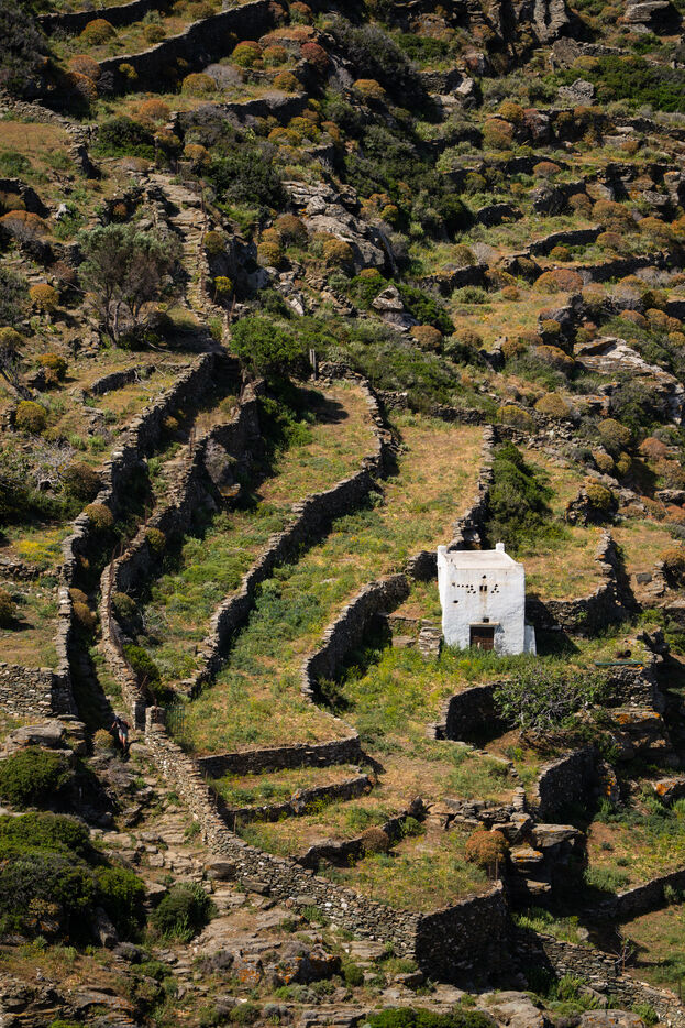 Sifnos île végétale des Cyclades, généralement peu fréquentée est reconnue pour ses nombreux chemins de randonnées, ses odeurs florales et ses maisons typiques blanchies à la chaux. C'est une ressource émotionnelle pour les randonneurs qui la visite idéalement au printemps