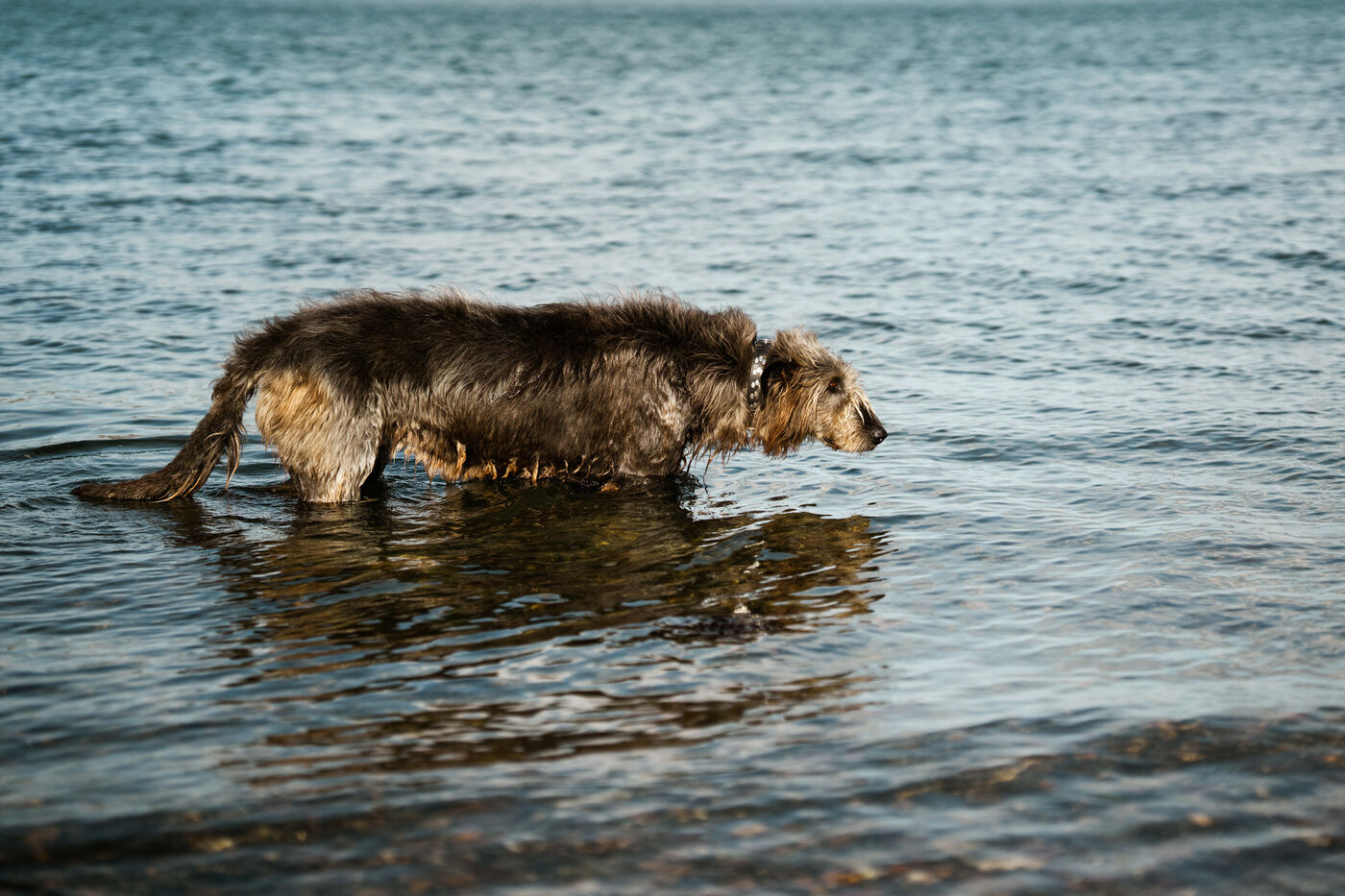 Les lévriers irlandais ou IRISH WOLFHOUNDS sont mentionnés dans l'histoire gaélique, depuis trois mille ans, et constituent l'une des plus grandes et plus anciennes races de chiens connues de l'humanité utilisés autrefois pour chasser les loups. Certains disent qu'ils peuvent lire dans l'âme d'un homme. Ils pénètrent dans le cœur d'un traître et savent instinctivement si une personne veut du mal à son maître. Ce dont je suis sûr, c'est que l'Irish Wolfhound est une race douce et loyale qui protégera son maître jusqu'à la mort, d'où l'adage Doux quand on le caresse, féroce quand on le provoque. Portraits de Aidan O Sullivan et ses chiens Spir et Mairtin réalisés sur la plage de Betra Comte de Mayo en Irlande le 16 avril 2025.