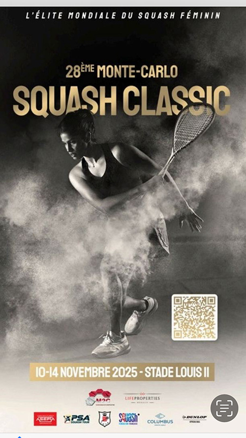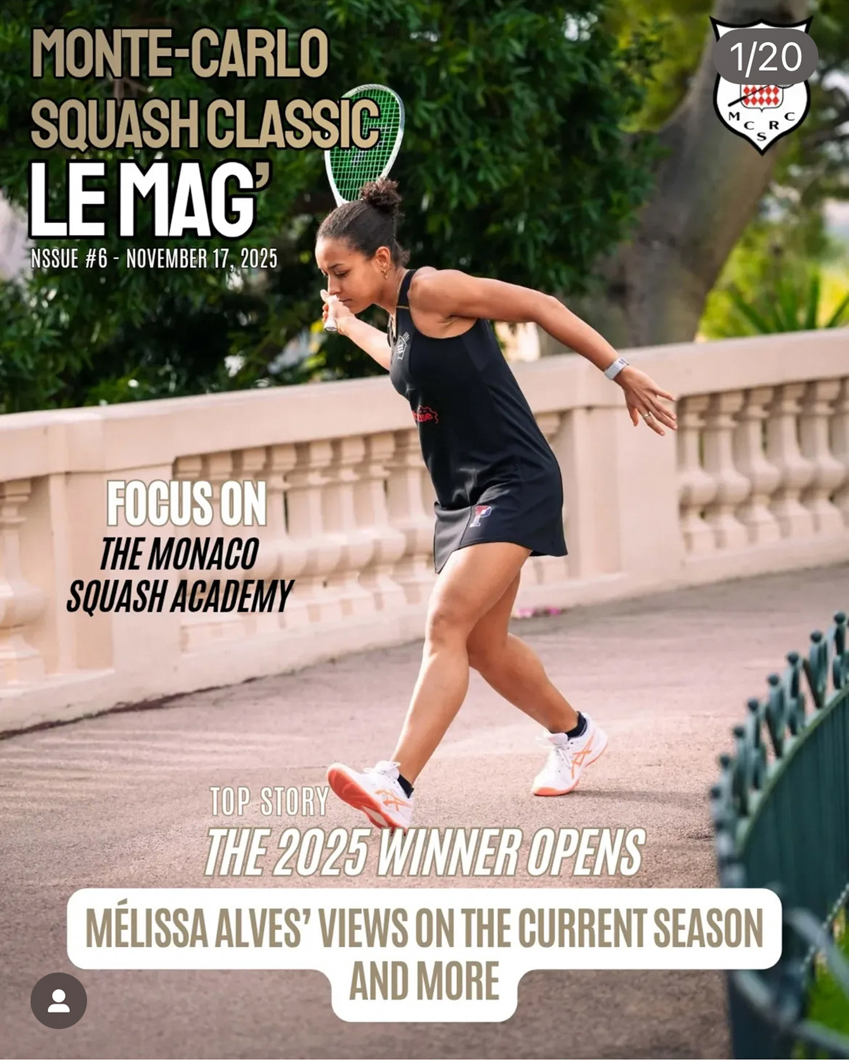 André Bourriquen Publications Séries / Archive Culture — Environnement — Société — Sport Sélection de séries Affiche du tournoi MONTE CARLO SQUASH CLASSIC 2025 10 novembre 2025 SQUASH MAGAZINE LE MAG DU 17 NOVEMBRE 2025.