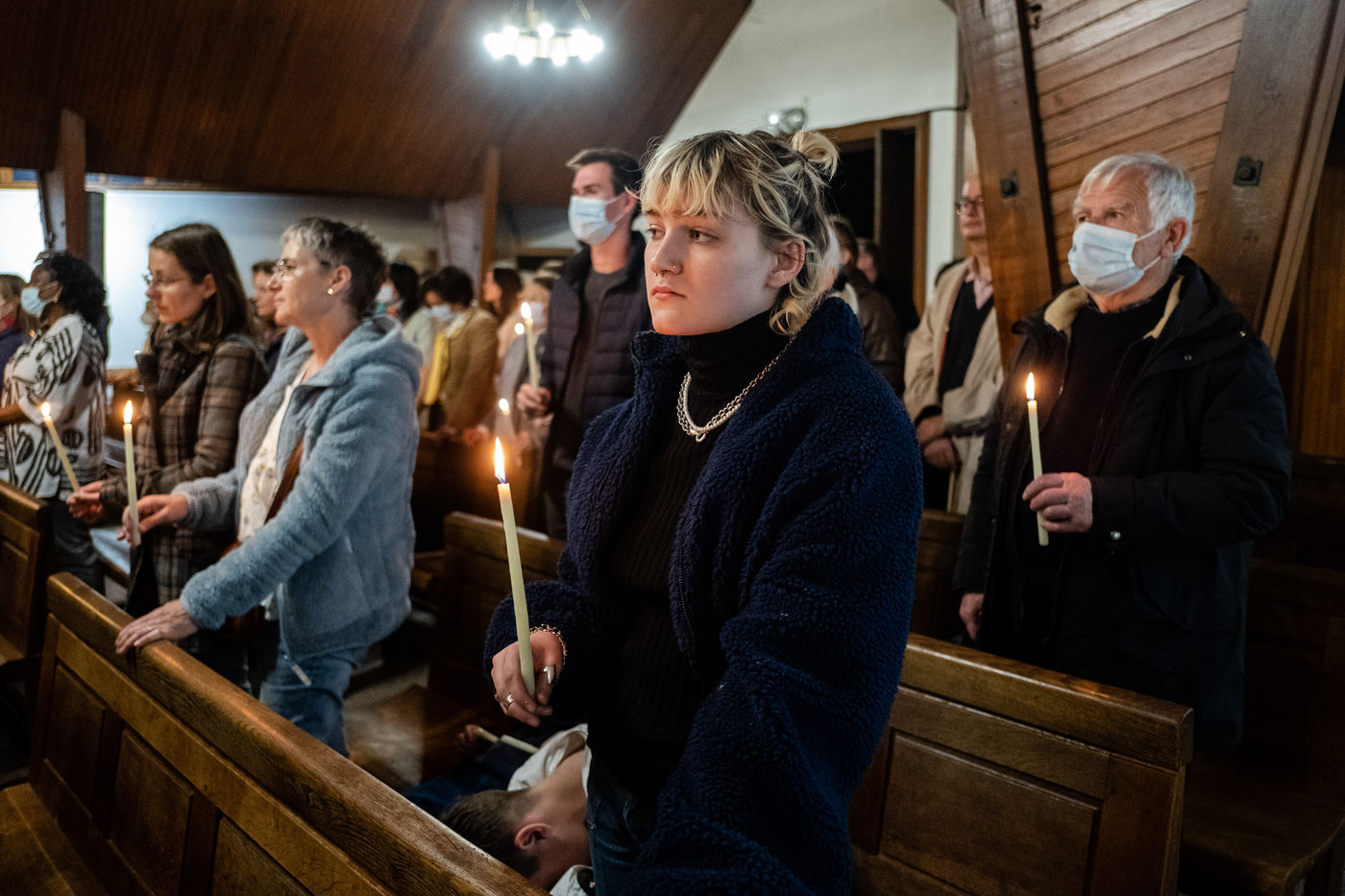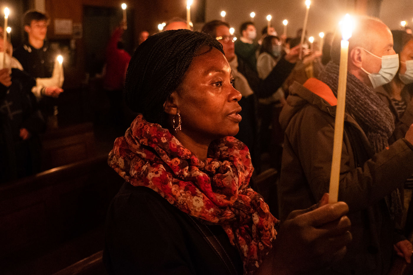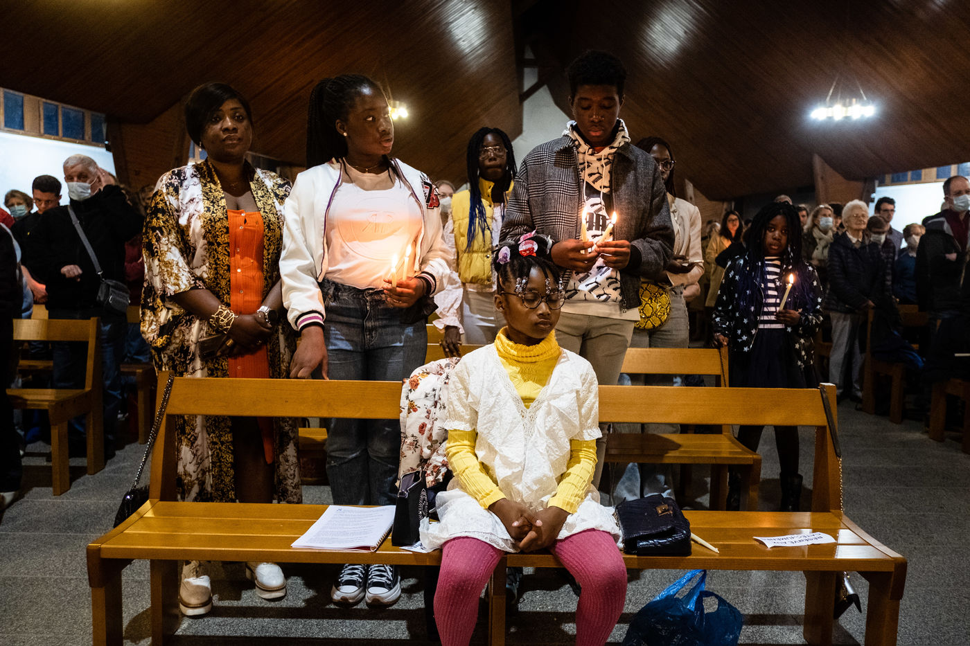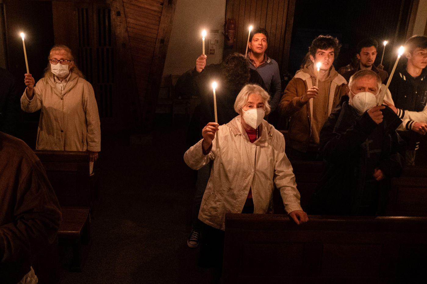 France, Saint Germain en Laye, 2022/04/16. A mass is given during the Easter Vigil in the parish of Saint Leger. Photography by Alexandre Bre / Hans Lucas.